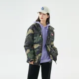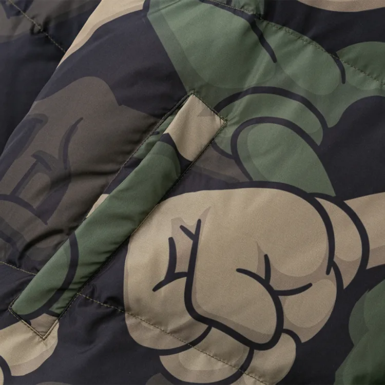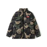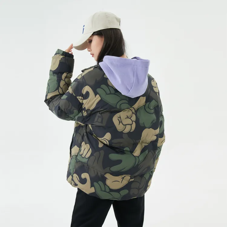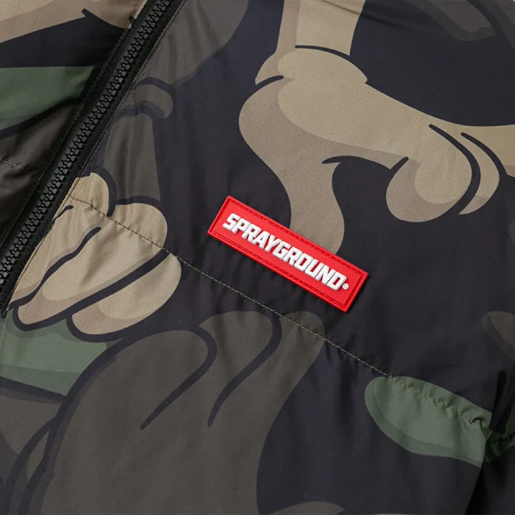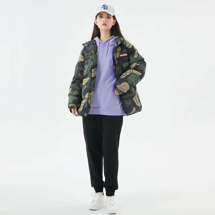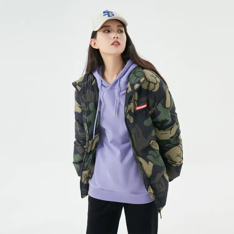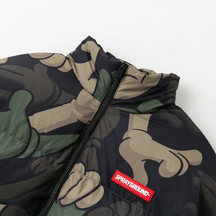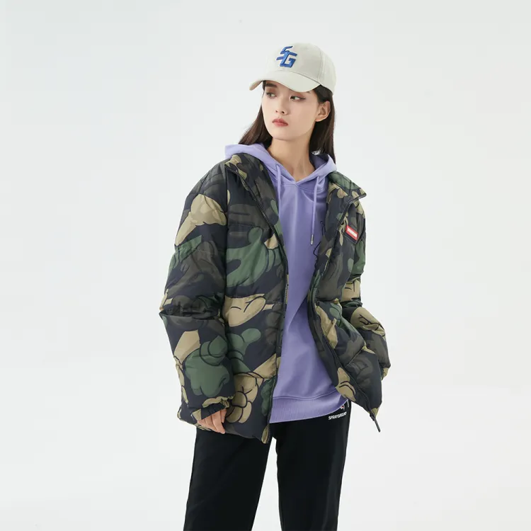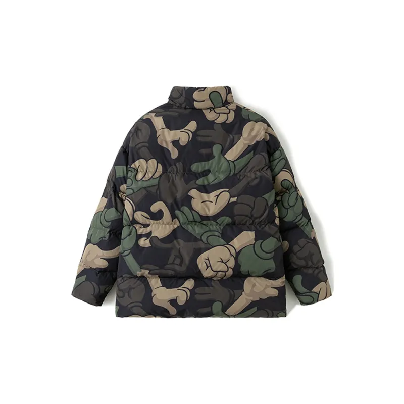 SPRAYGROUND Мультяшный Воротник-стойка Свободный крой Утолщенный пуховик Унисекс Армейский зеленый