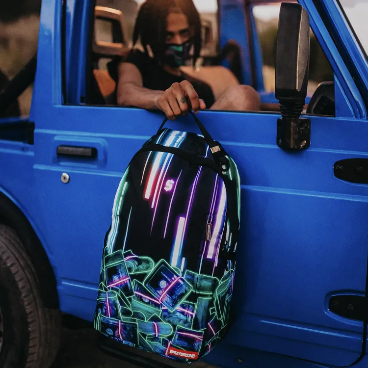 SPRAYGROUND Ткань Ноутбук Сумка Рюкзак Средний Унисекс Неон Доллар Цветовой блок