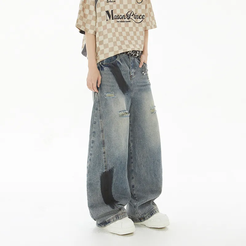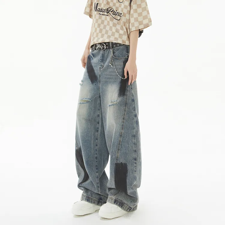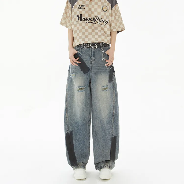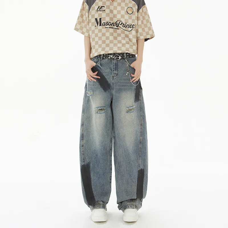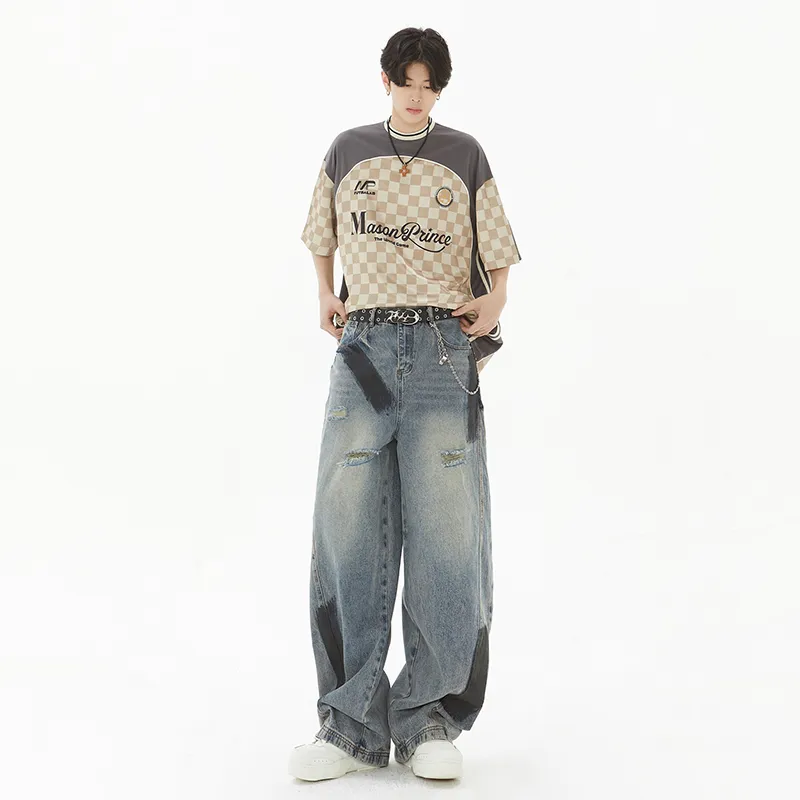 SRKJ Цветовые блокирующие унисекс джинсы