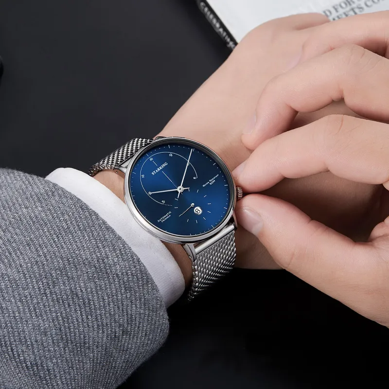 STARKING Handsome Collection Автоматический Механический Механизм Ремешок Часы из Нержавеющей Стали Унисекс Белый Циферблат