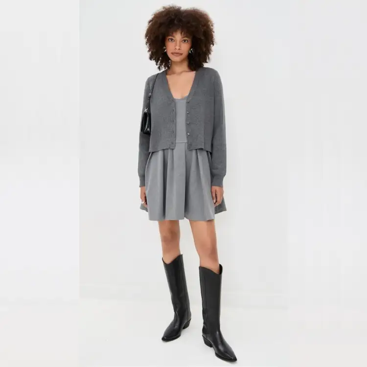 Топ: 95% хлопок, 5% кашемир Юбка: 49% полиэстер, 36% вискоза, 8% шерсть, 7% эластан