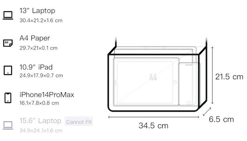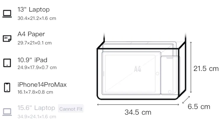 Длина (размер в длину) 34,5 см, Ширина 6,5 см, Рекомендуемая высота 21,5 см