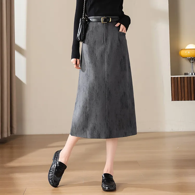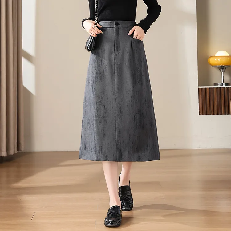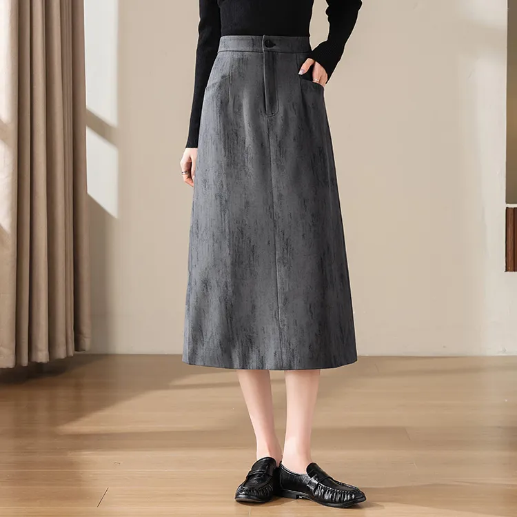 Still Quiet Повседневный Длинный Юбка Женская Темно-Серый