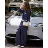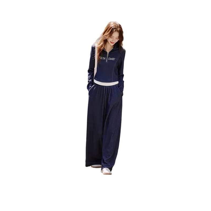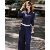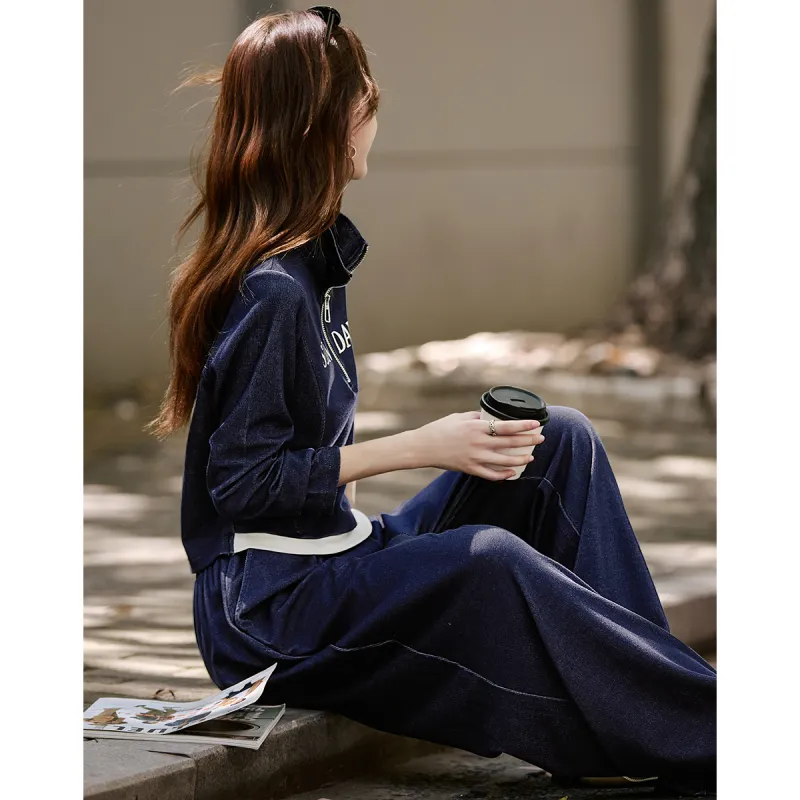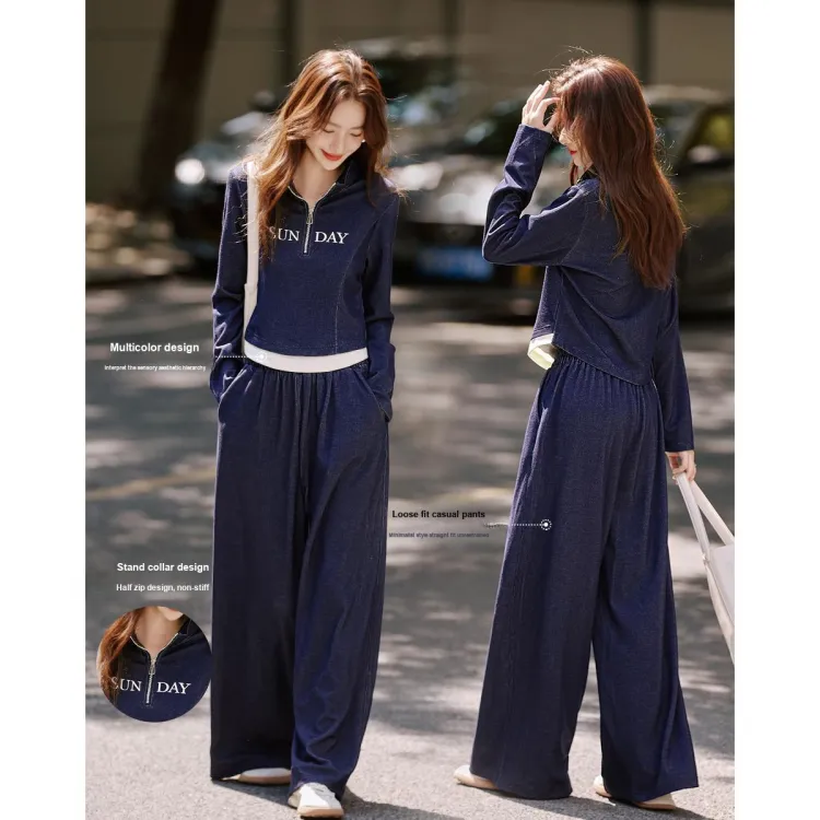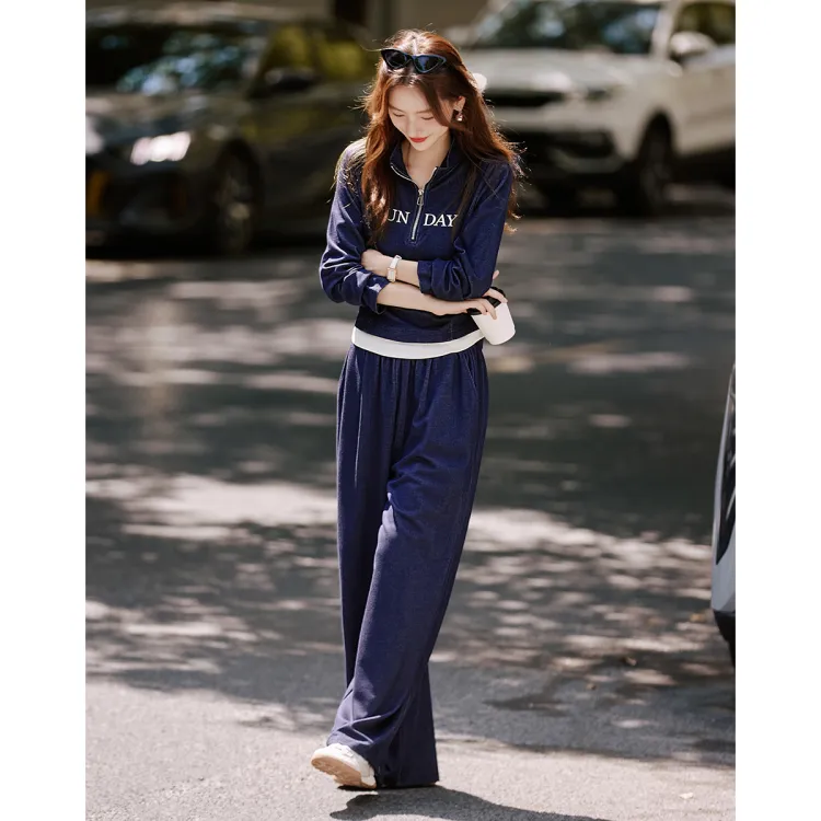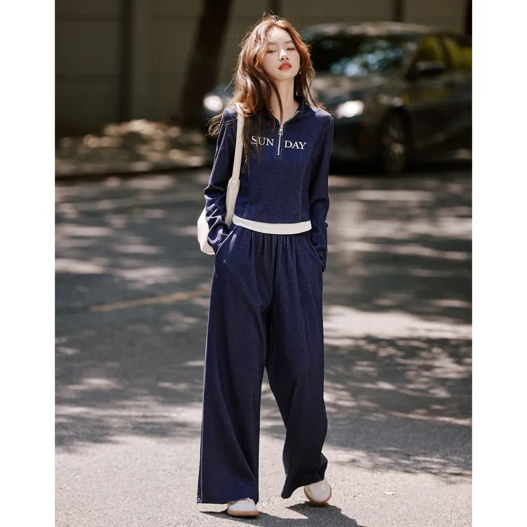 Still Quiet Half Открыто Ожерелье-чокер Цветовой блок Письмо Топ Широкие брюки Одежда Комплекты Повседневный Женский