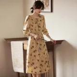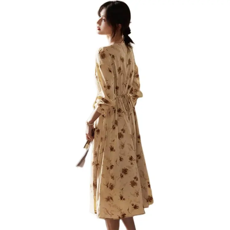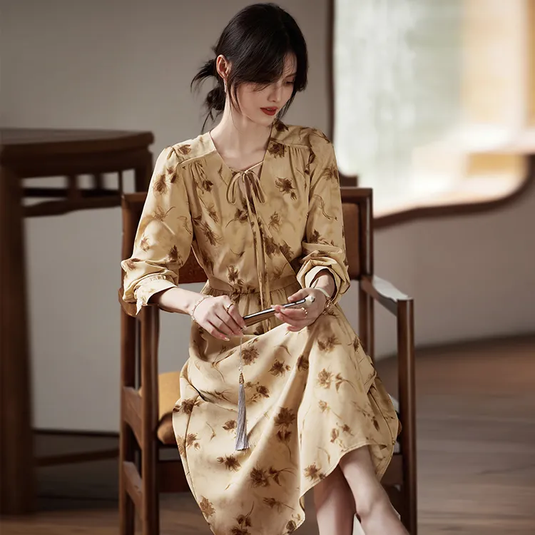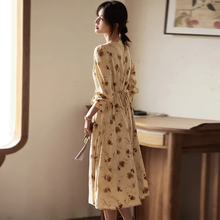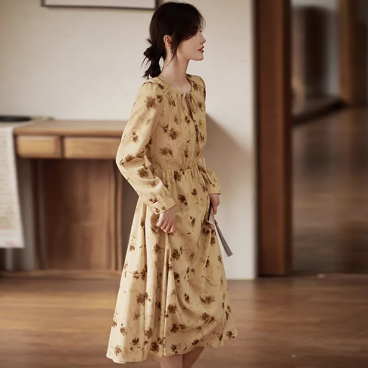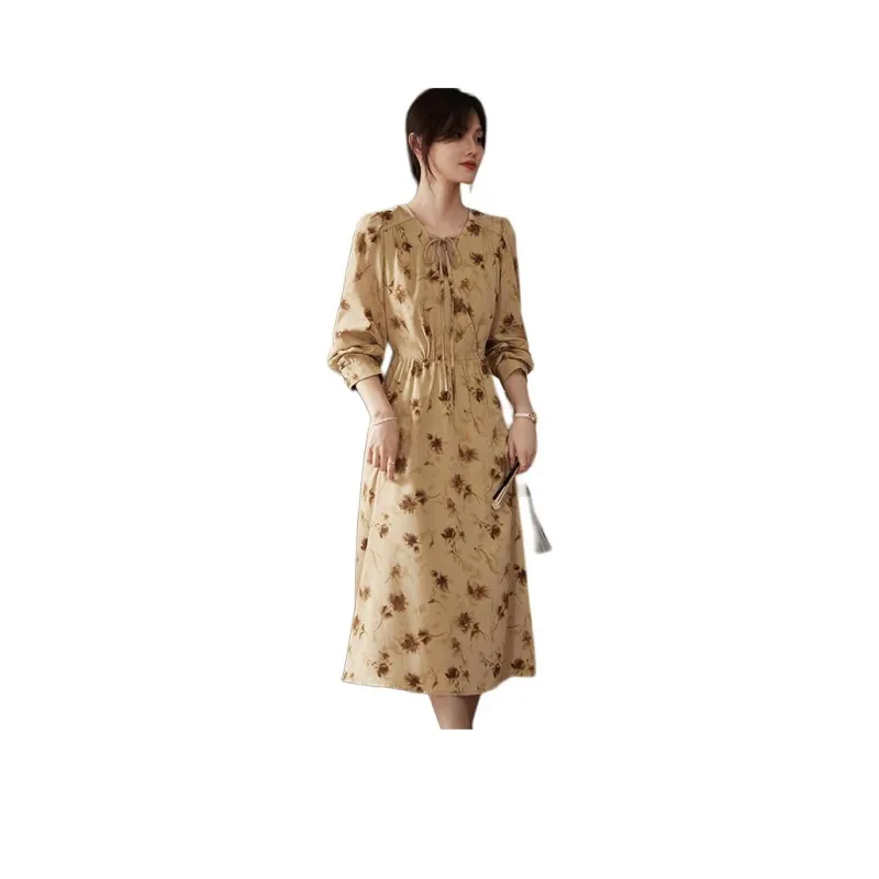Still Quiet Длинное платье с длинными рукавами женское кофейного цвета
