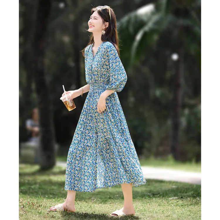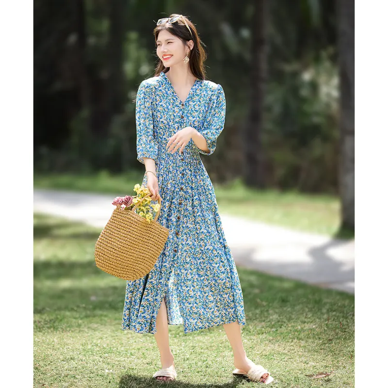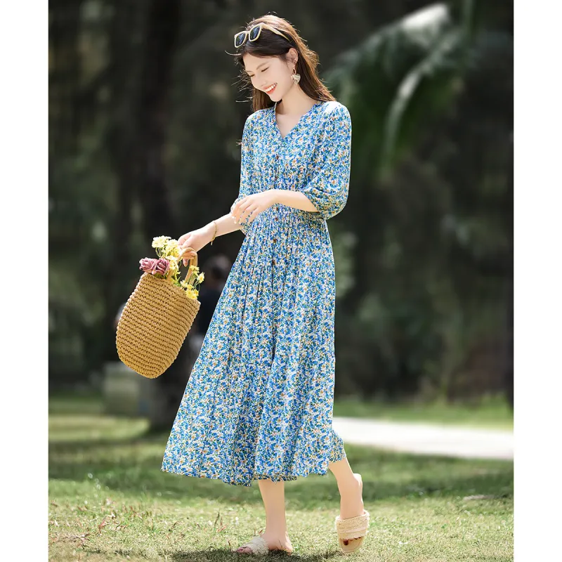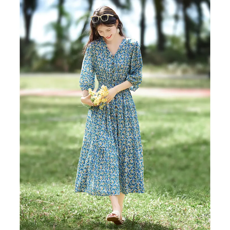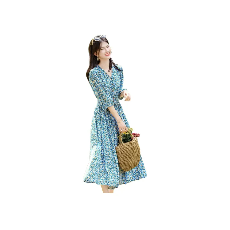 Still Quiet Длинное платье с длинными рукавами женское зеленый многоцветный