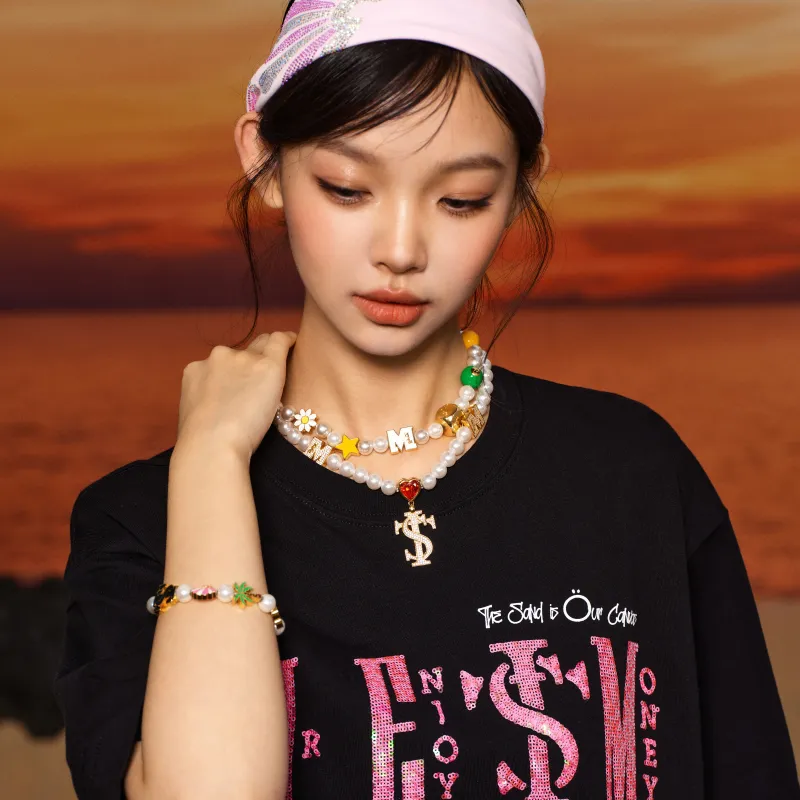STK SMALL TOWN KID Медный с цирконием и стеклянными бусинами ожерелья унисекс