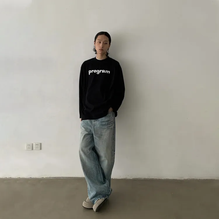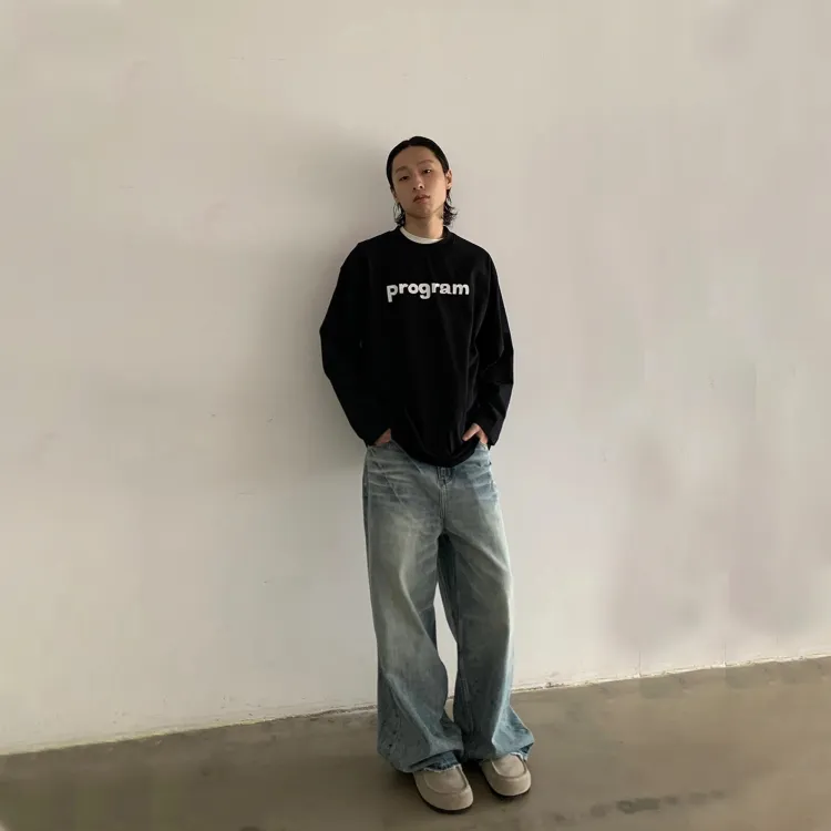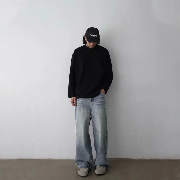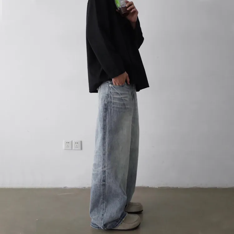 STRANGER LAB Выстиранные синие унисекс джинсы
