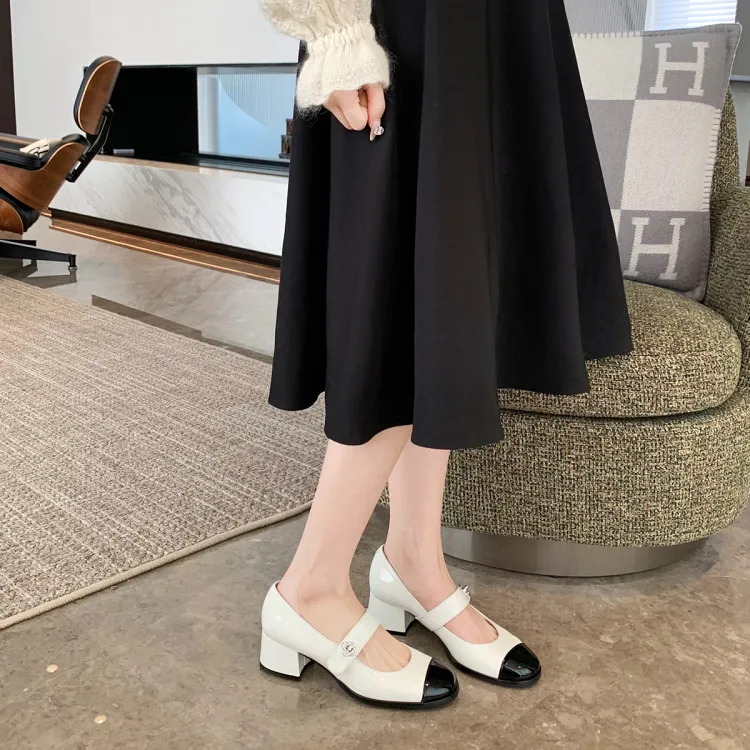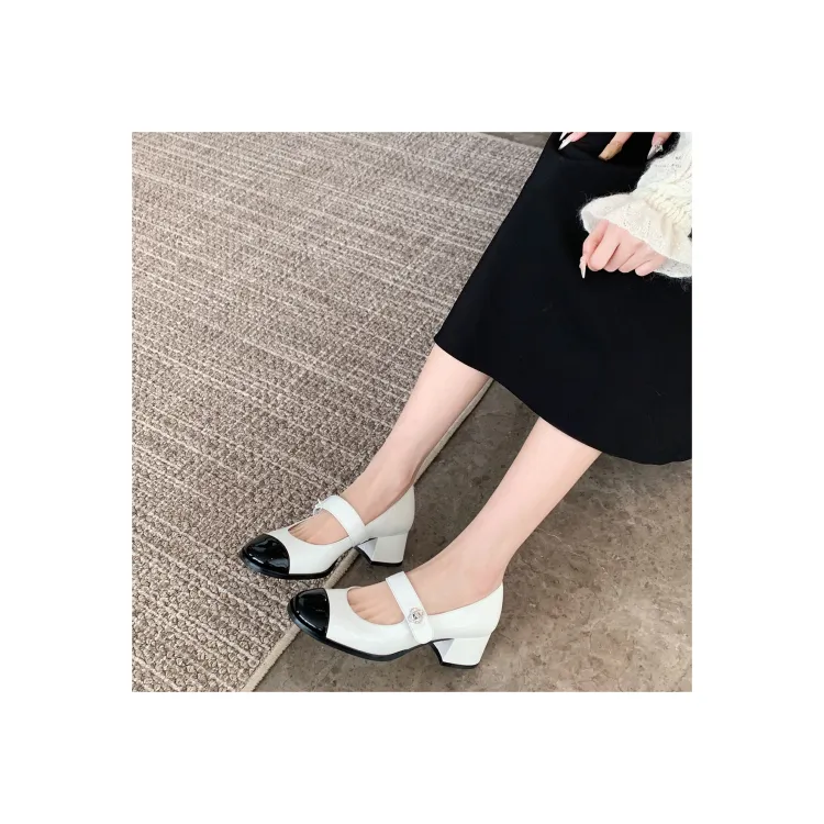 Белый с черным (толстый каблук)