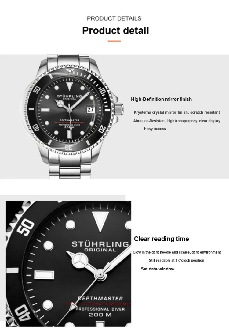 STUHRLING Schurter Diver Watch Мужские Western Наручные часы Автоматический Механический Механизм