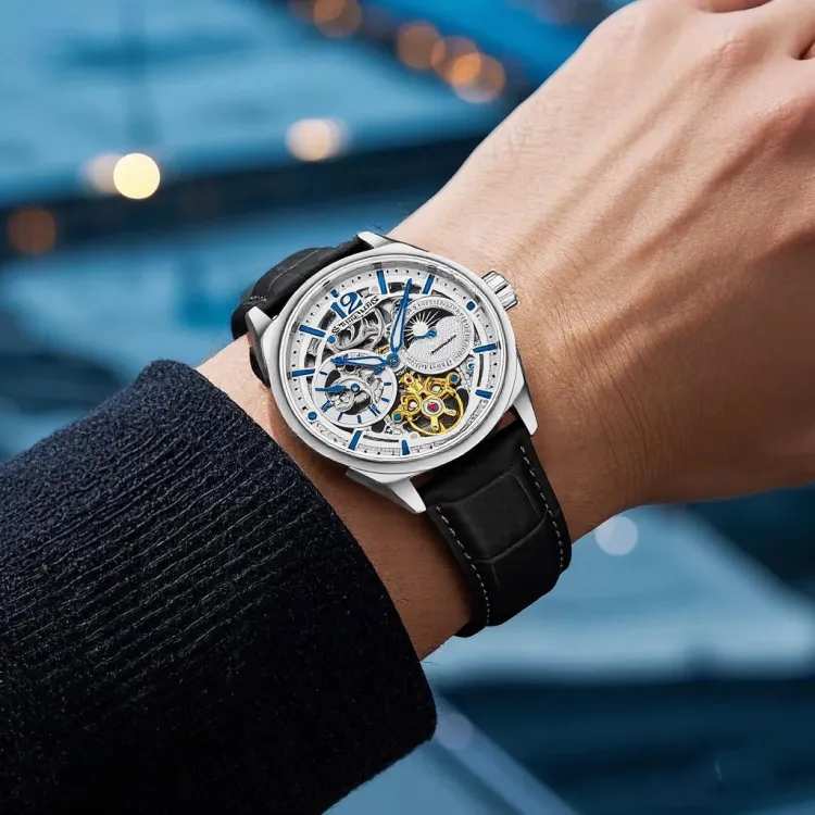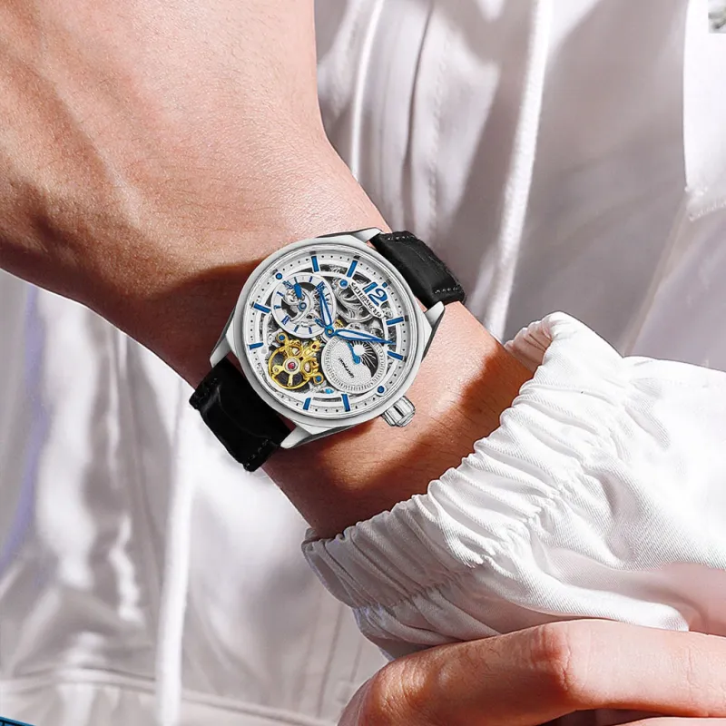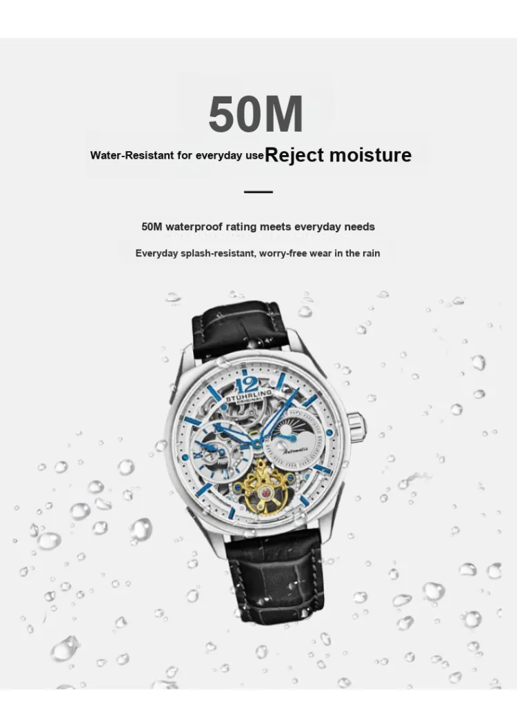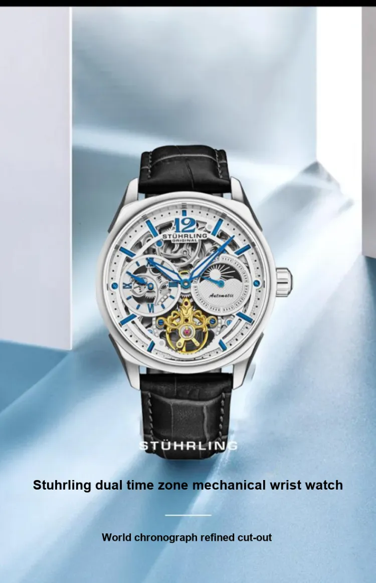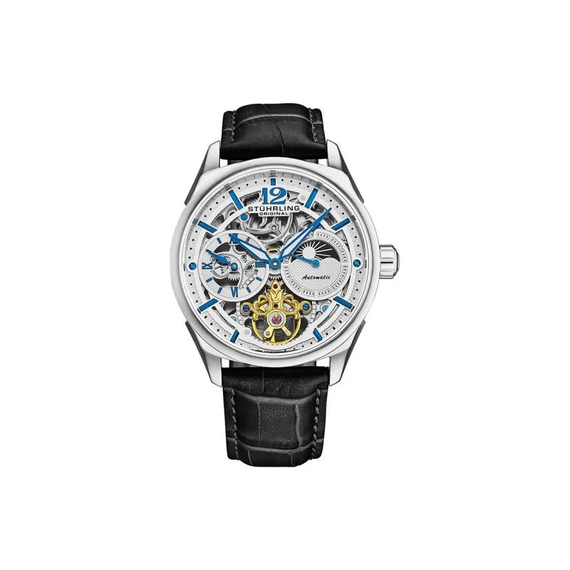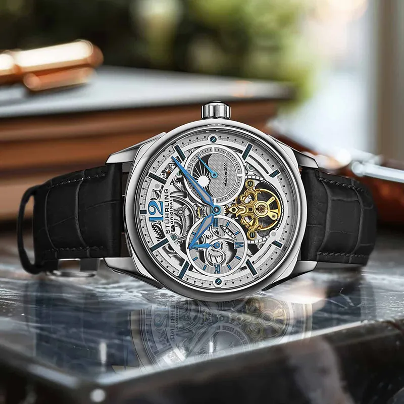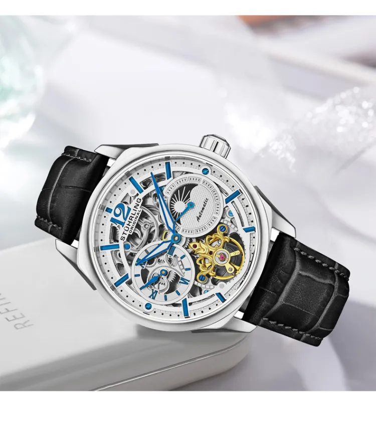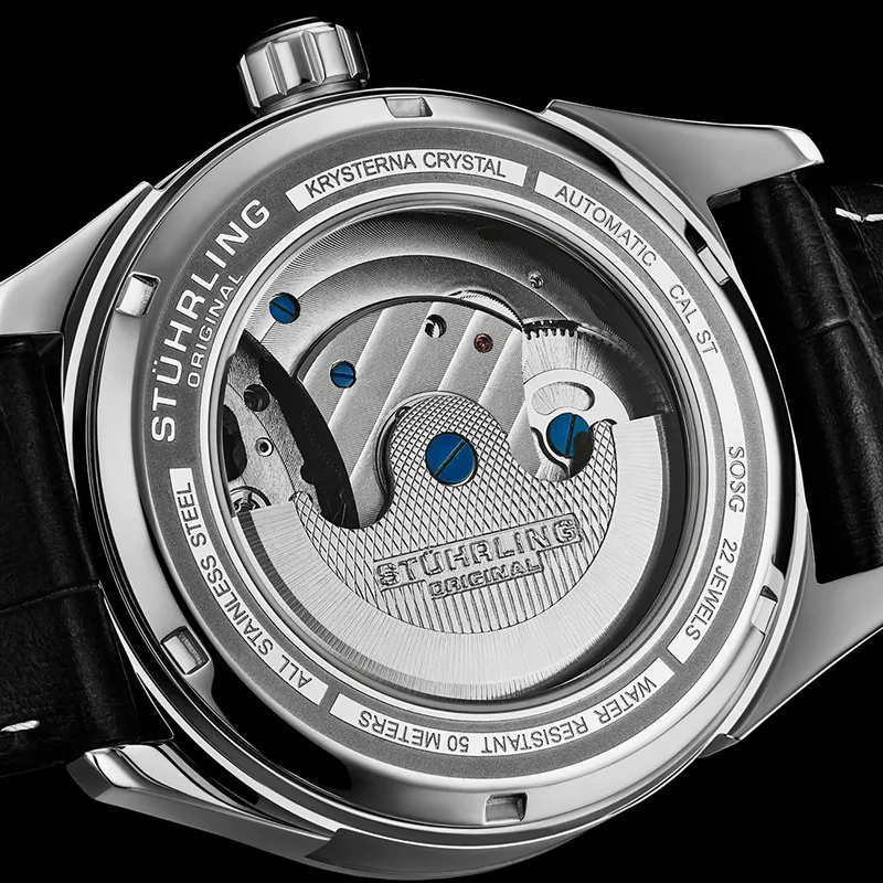 STUHRLING Schiller Fly Reel Watch Мужские западные Наручные часы Автоматический механический механизм Кожаный ремешок