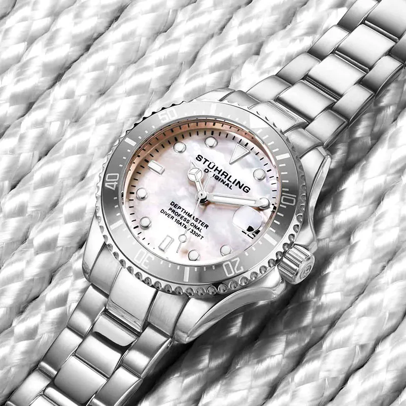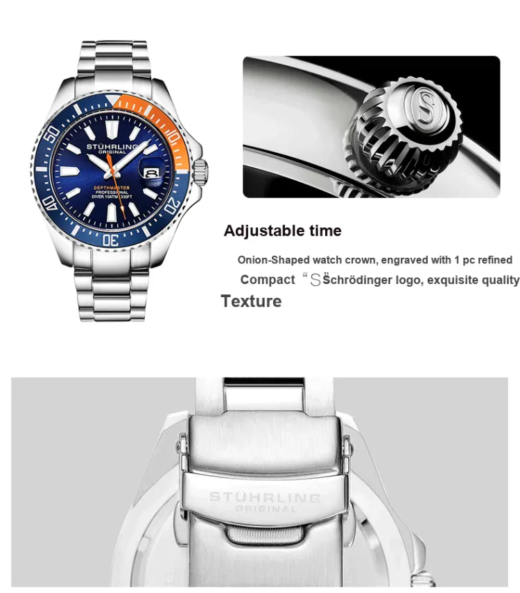 STUHRLING Schutz Couple Watch Western Imported Наручные часы Кварцевый механизм Ремешок из нержавеющей стали 42 мм Синий циферблат Унисекс