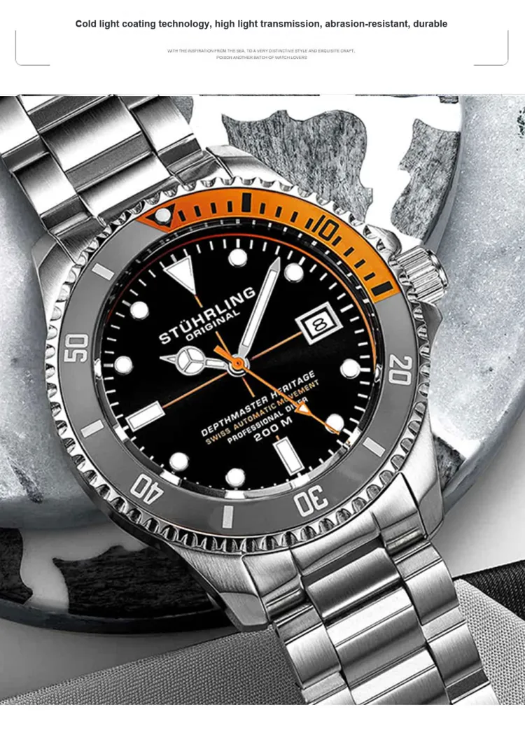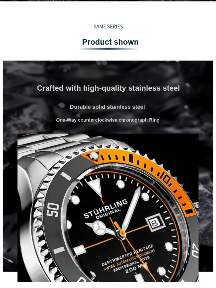 STUHRLING Stirling Diver Collection Мужские западные часы Автоматический механический механизм