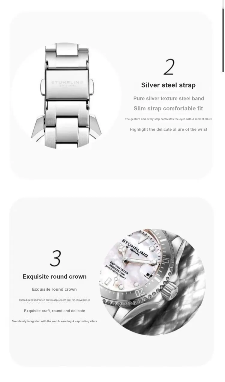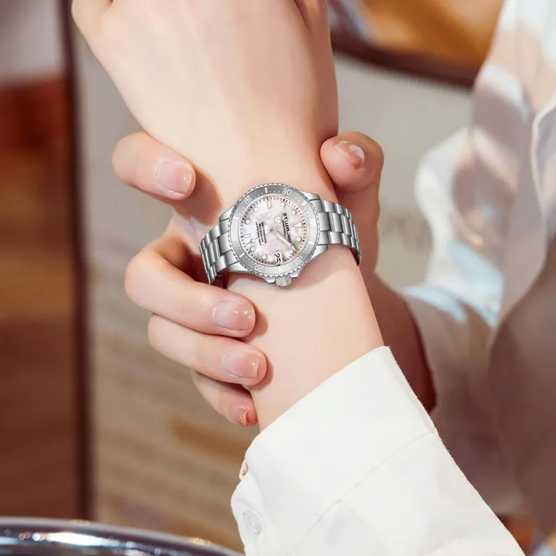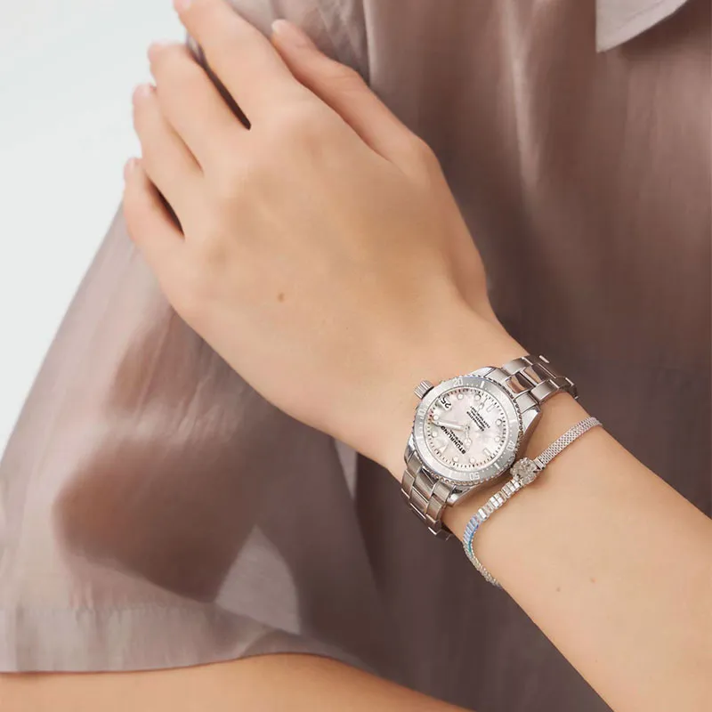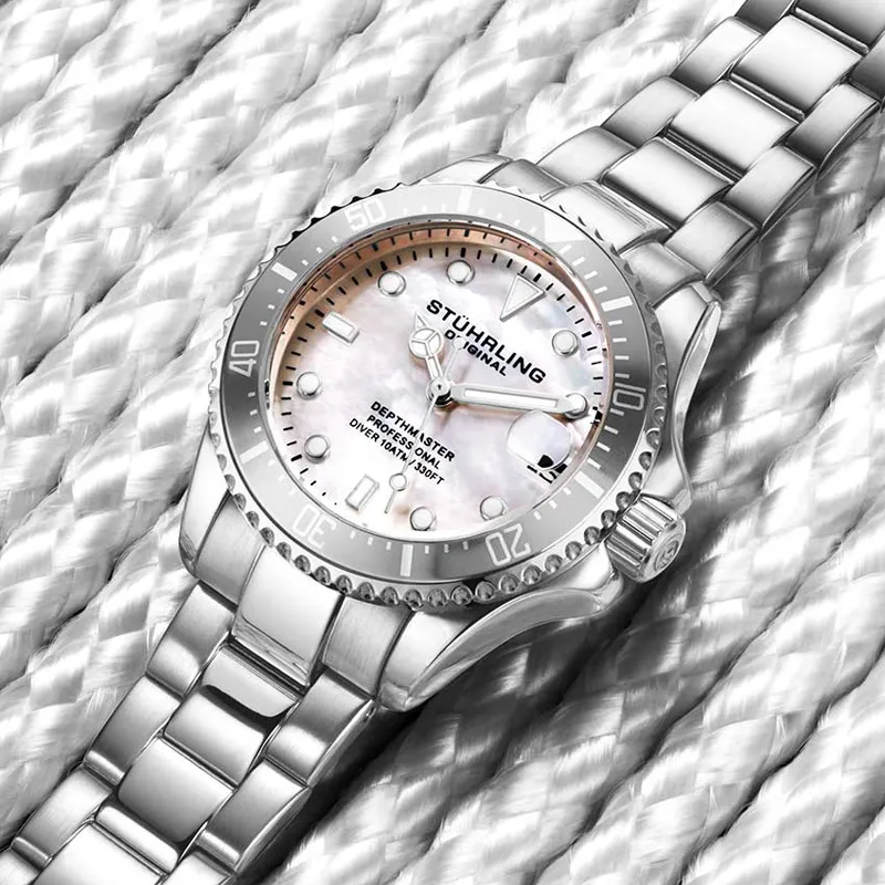 STUHRLING Кварцевый механизм Женские часы Diver Collection, 32мм*9мм*32мм, жемчужная раковина, цвет