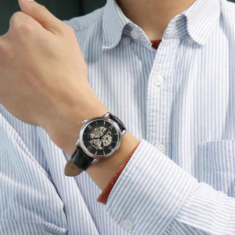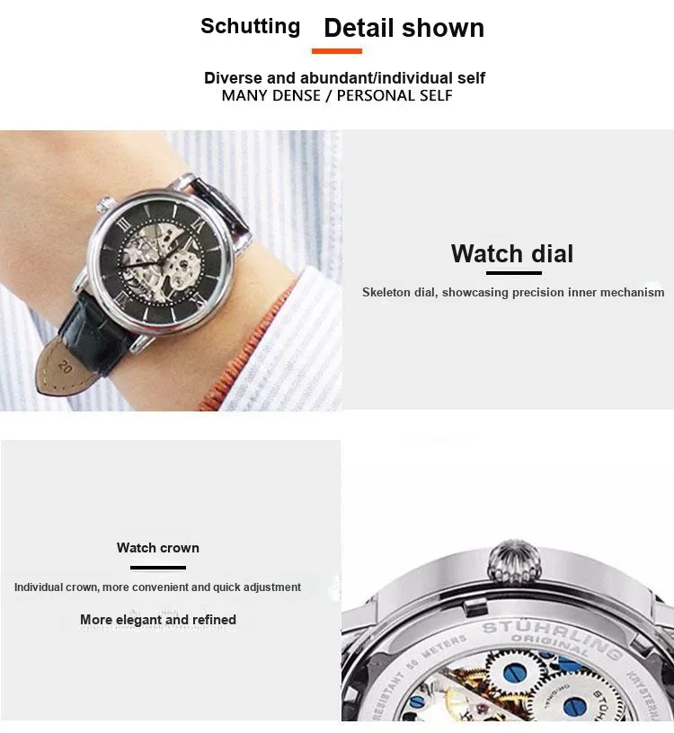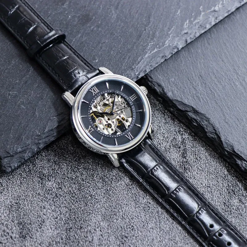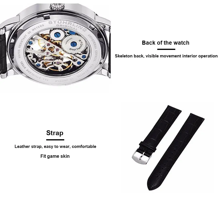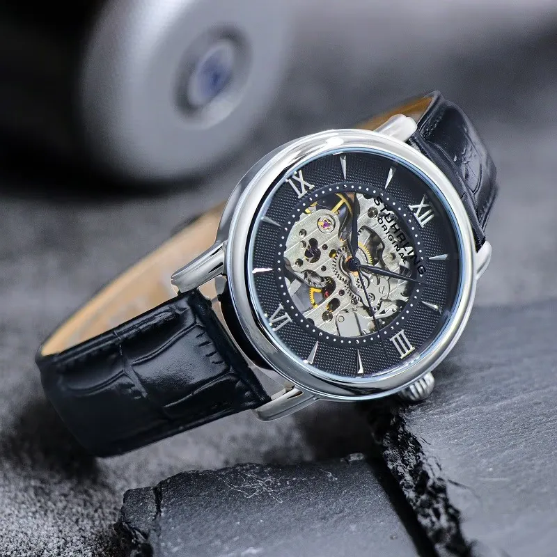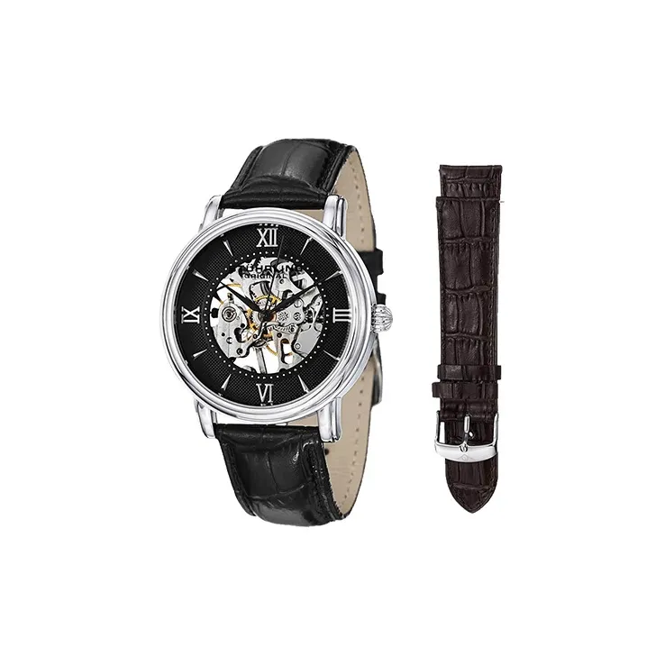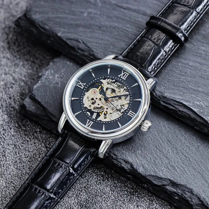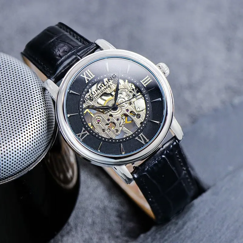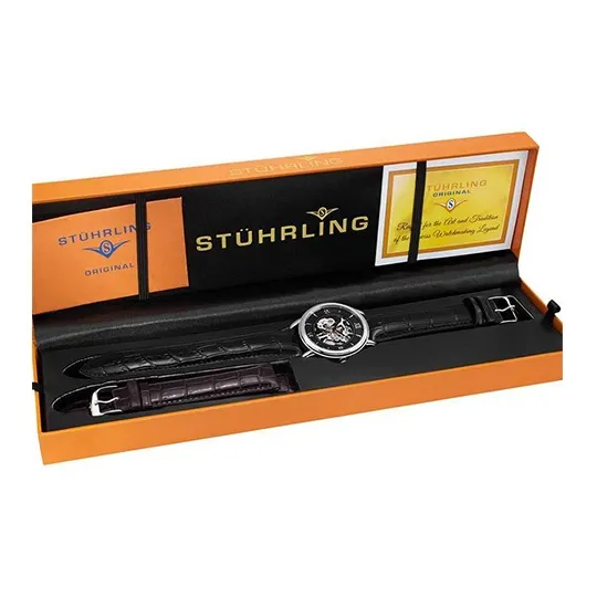 STUHRLING Мужские часы Механизм с ручным заводом Кожаный ремешок 40 мм Черный циферблат Часы 458G2,33151Комплект