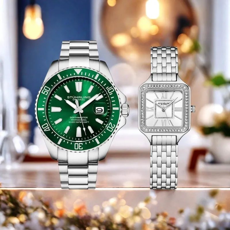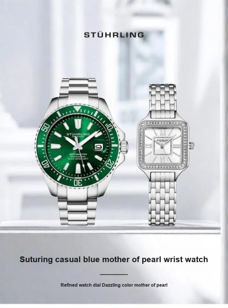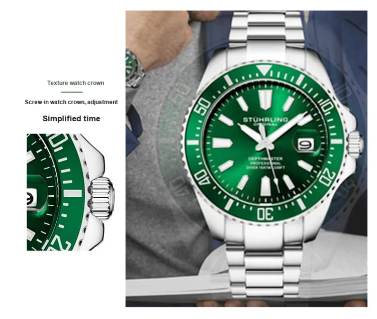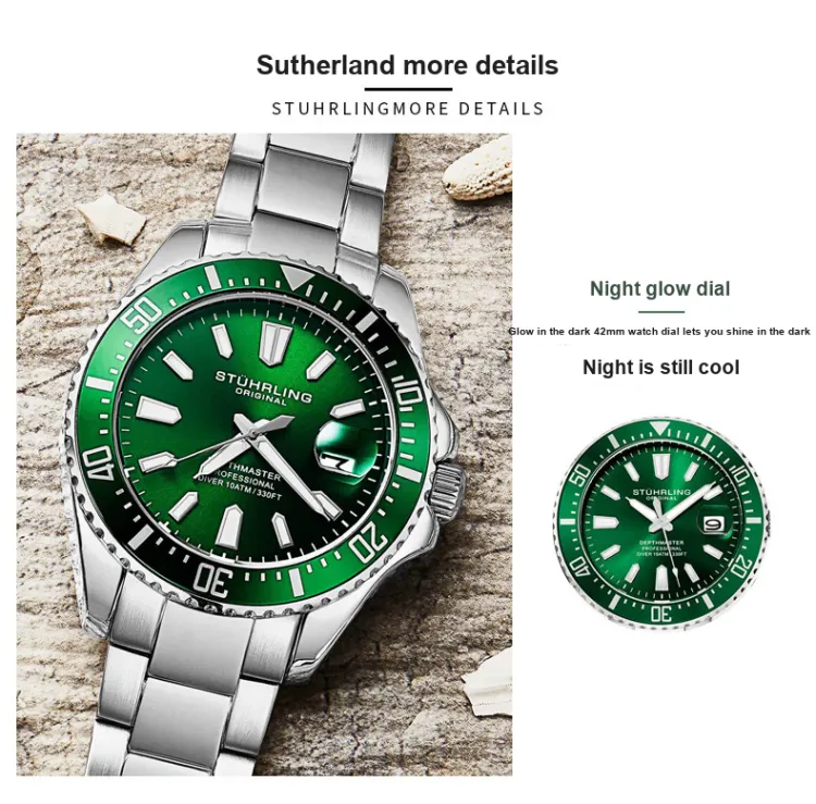 STUHRLING Watch Кварцевый механизм Нержавеющая сталь Ремешок 42 мм Зеленый циферблат Унисекс