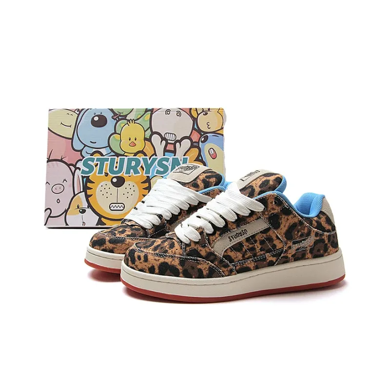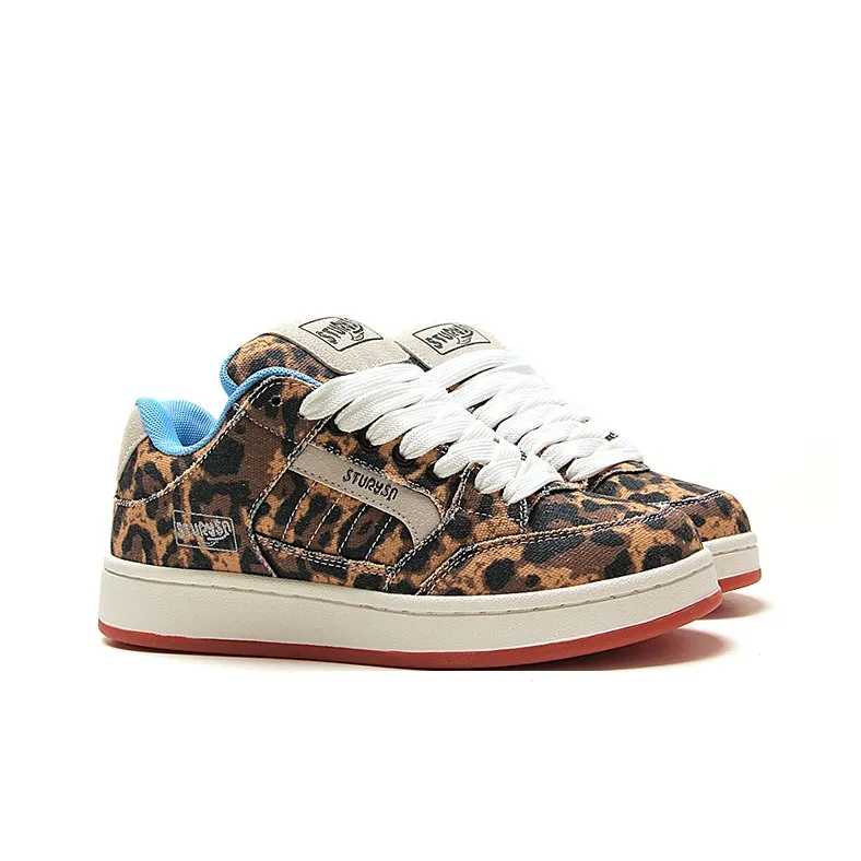STUR YSN Устойчивые к истиранию противоскользящие низкие кеды для скейтбординга унисекс с леопардовым принтом