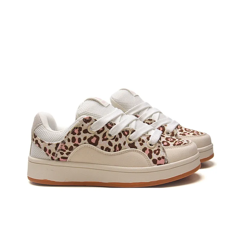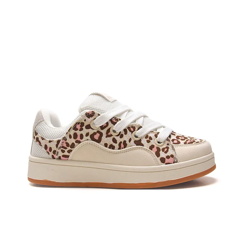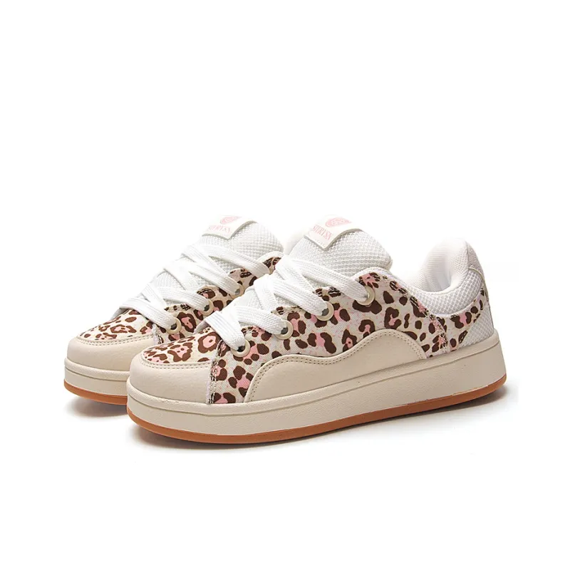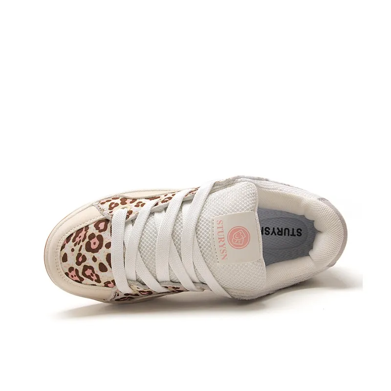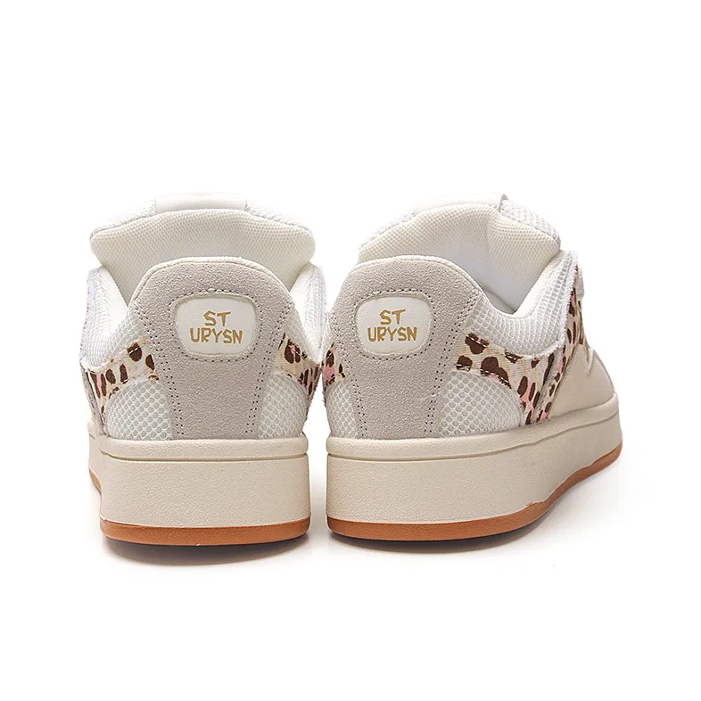 STUR YSN Низкие кроссовки для скейтбординга женские бежевые с леопардовым принтом