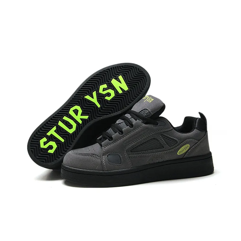STUR YSN Износостойкий и Легкий Низкий Топ Скейтборд Кроссовки Женские Темно-Серый Неон-Зеленый