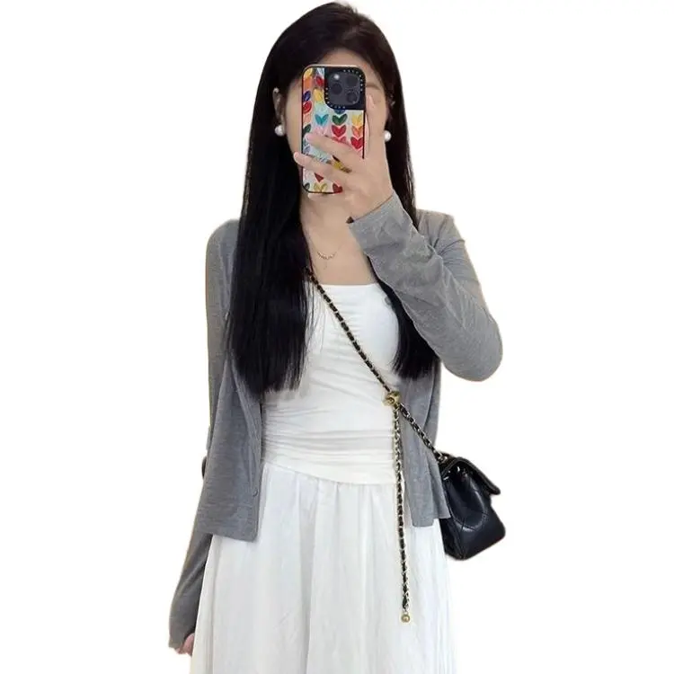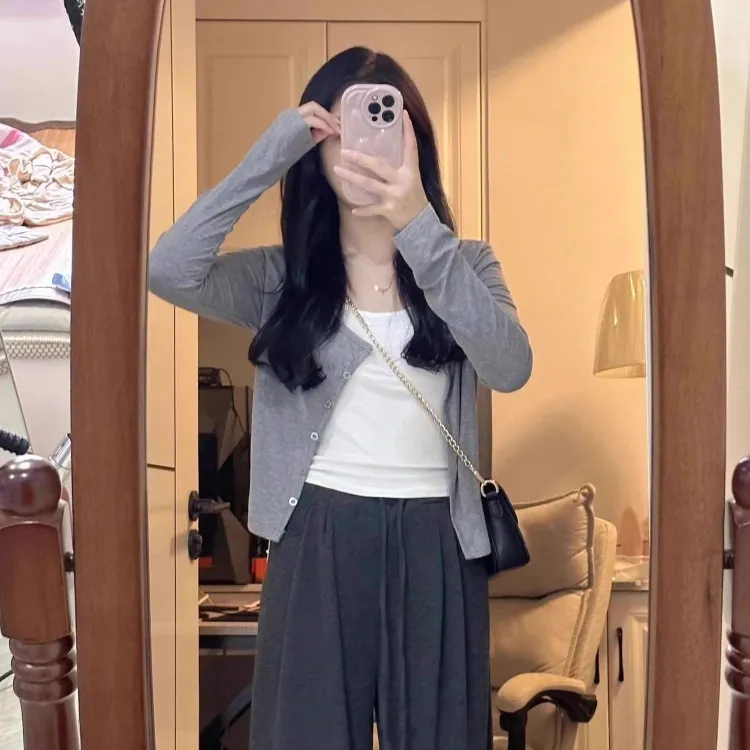 STYUW Серый Кардиган Женский Трикотаж