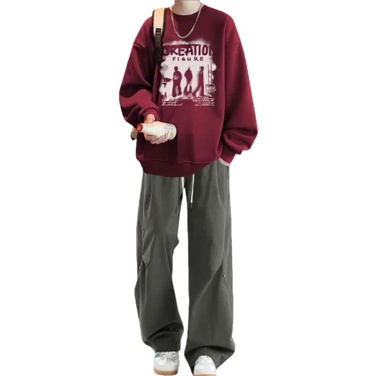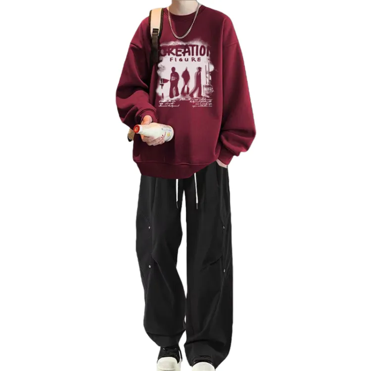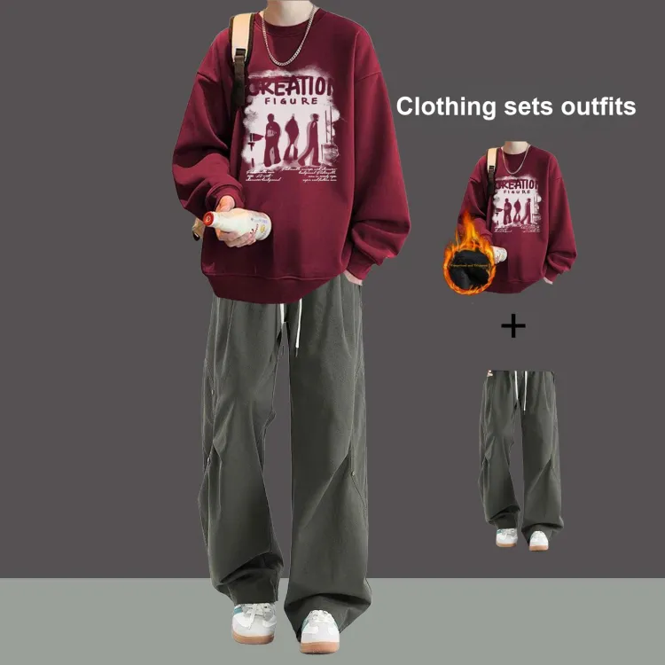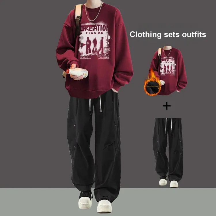 Флисовая подкладка, три тени, красный свитшот + черные повседневные штаны с двумя пуговицами