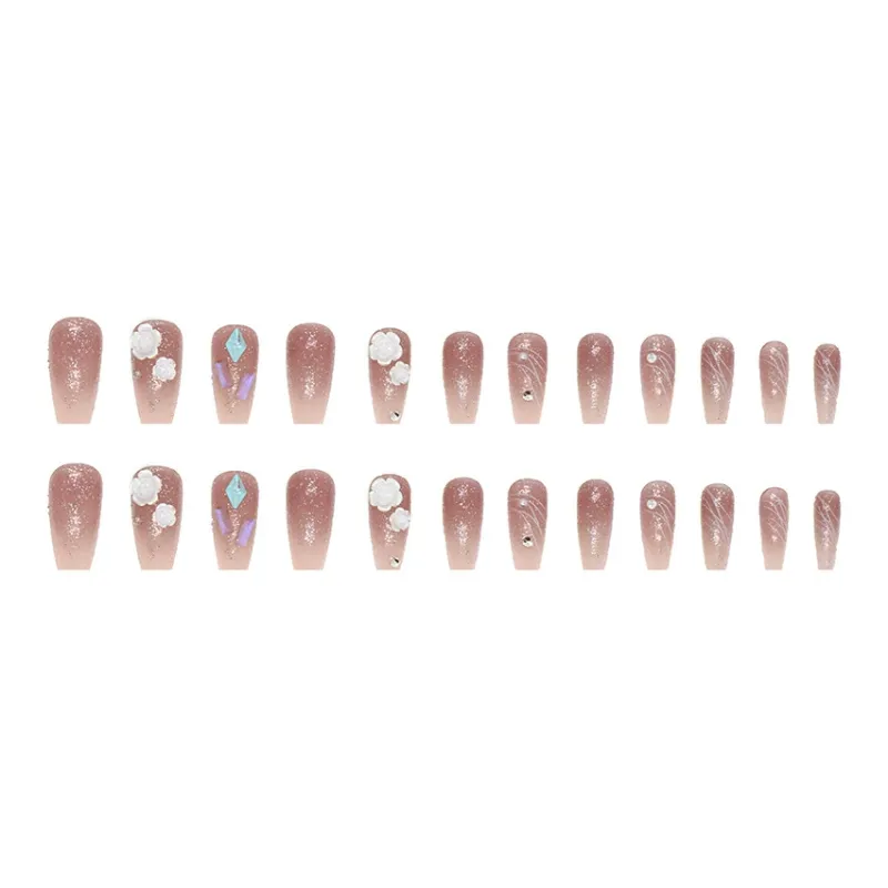 Suiyiie 3D-эффект Молочно-белый Камелия False Nail Aurora Квадратный Ромб Яркий Декор для Ногтей