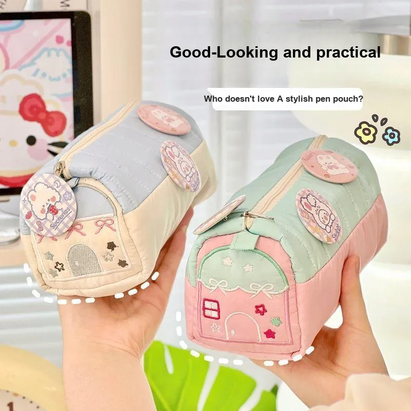 Suiyiie Small House Дизайн Милый Освежающий Пенал Большой Объем Студенты Нишевый Кисть для макияжа Мешок для хранения