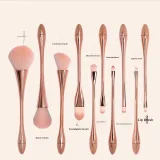 Кисть для макияжа, 10 штук, комплект - розовое золото, кожа