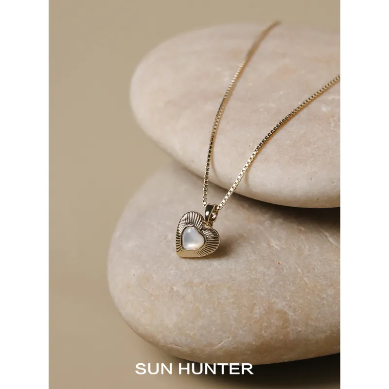 Сердце, жемчужная раковина, базовая, без рисунка, цепь