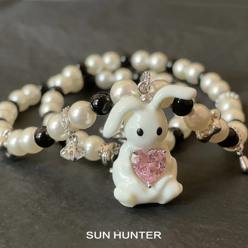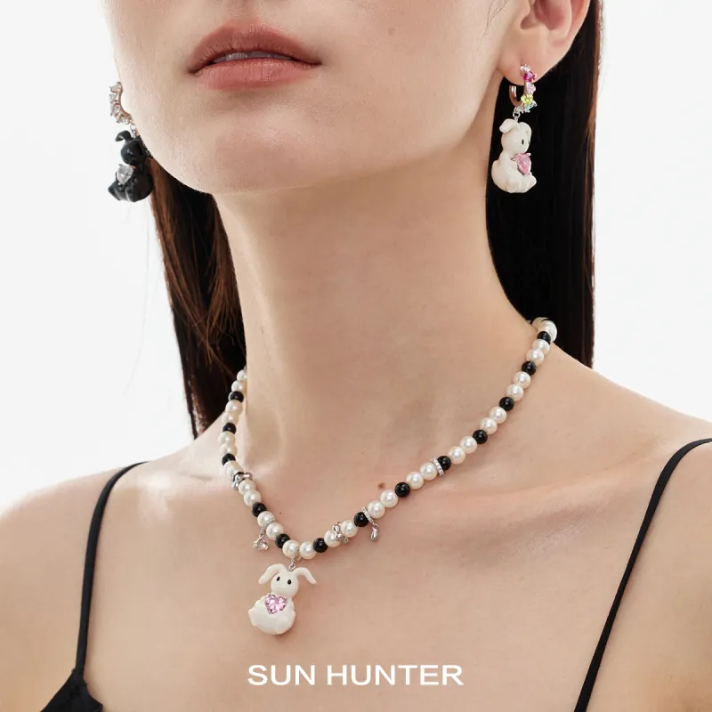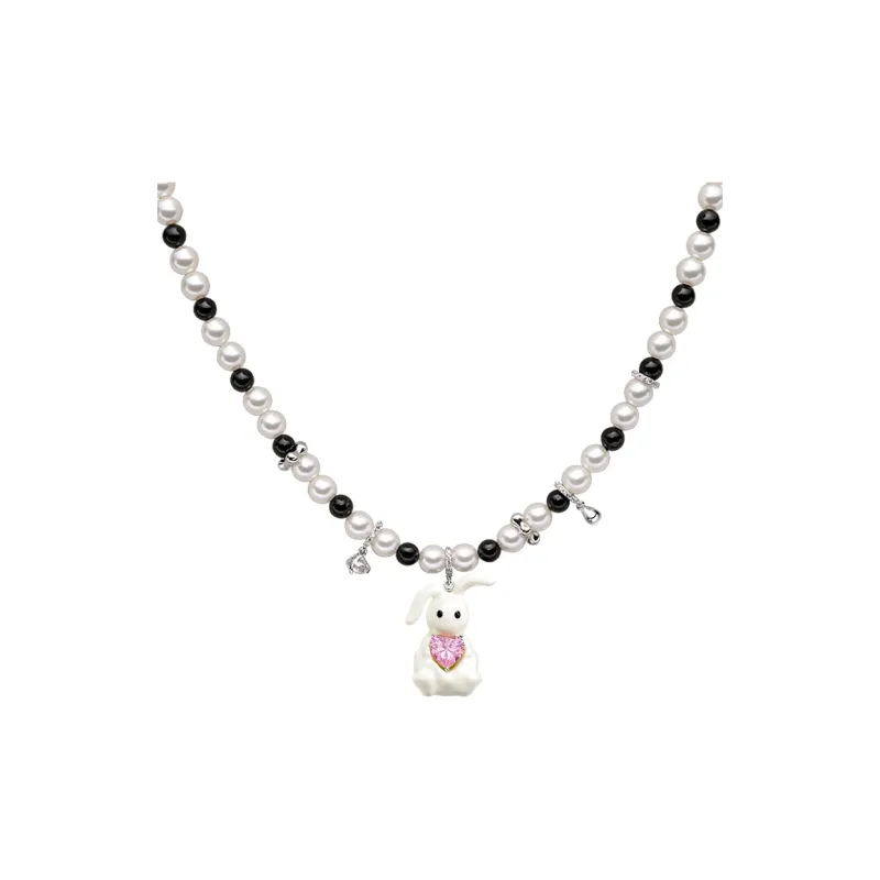 Искусственный жемчуг, эмаль, кролик, ожерелье (черный кролик)