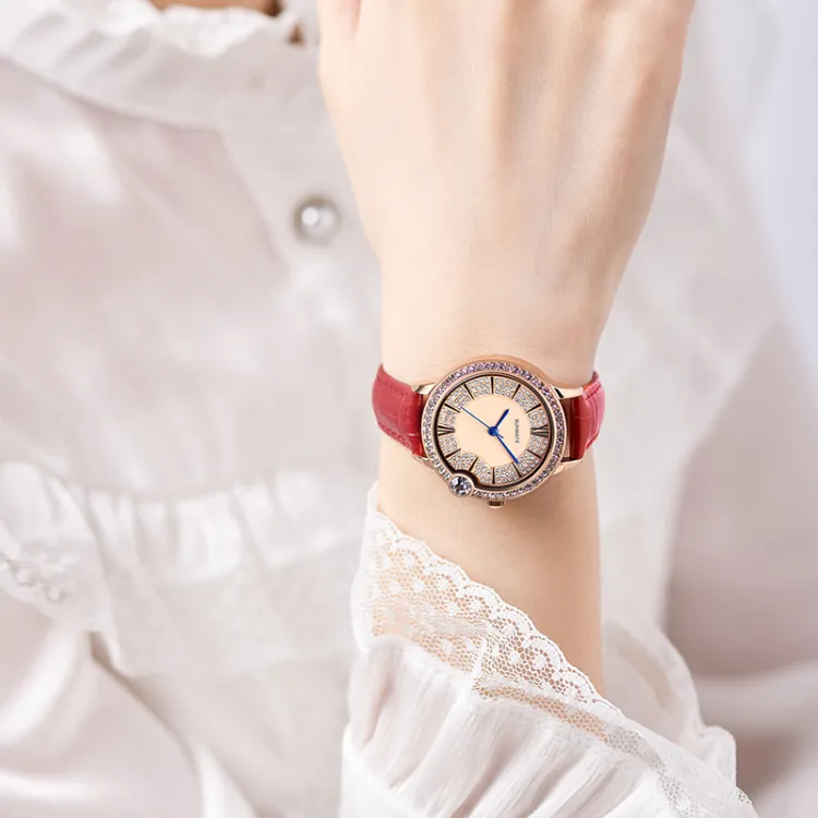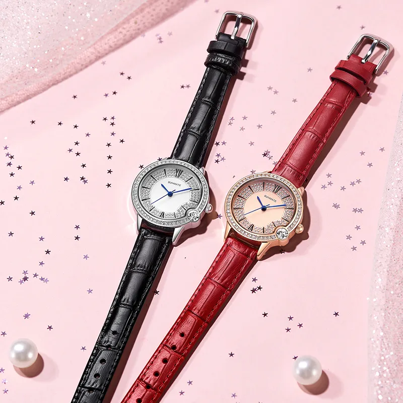 SUNMATE Full Diamond Улучшенный Элегантный Часы для Женщин Легкий Luxury Нишевый Женские Мода Кварцевый Механизм