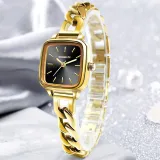 Комплект:Золотой корпус, черный циферблат, браслет, ремешок