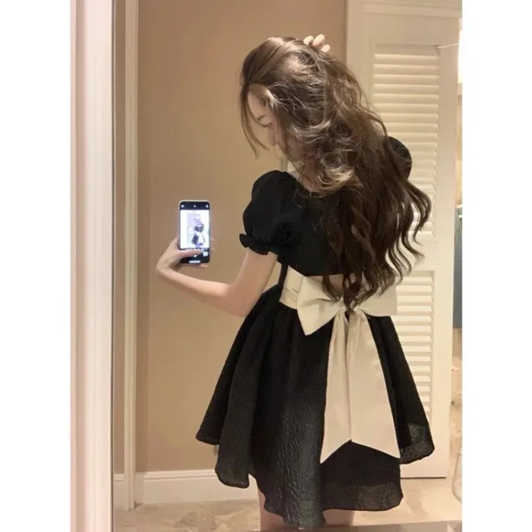 SUNSUNTOWN Короткое платье с короткими рукавами летнее женское