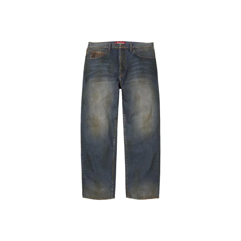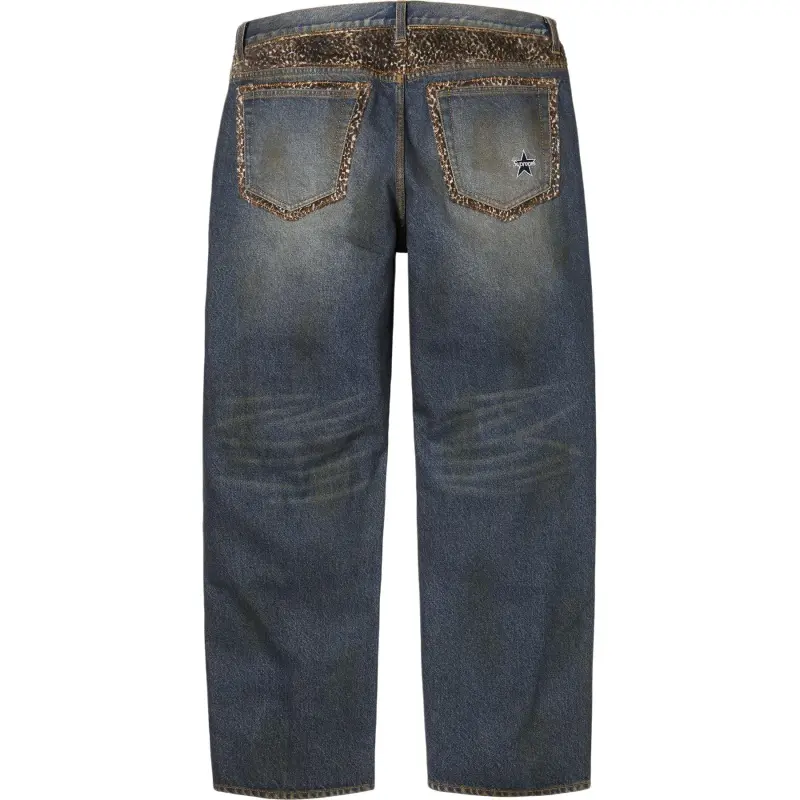 Supreme FW25 Леопард Искусственный мех Свободный крой Джинсы Джинсы Унисекс
