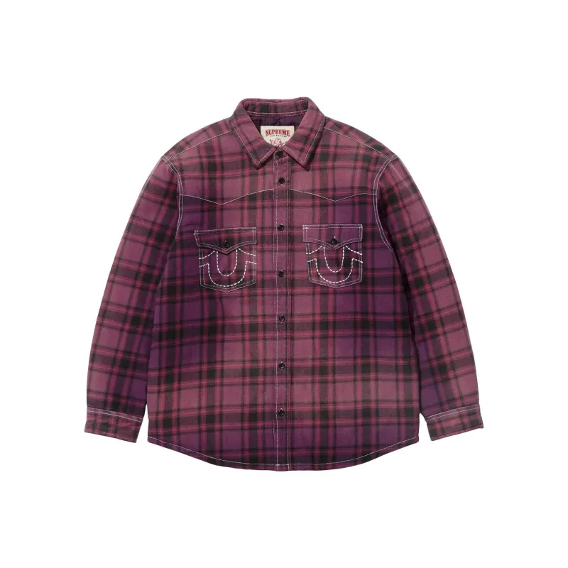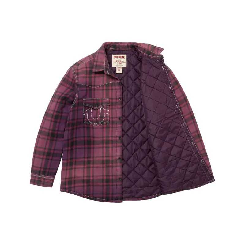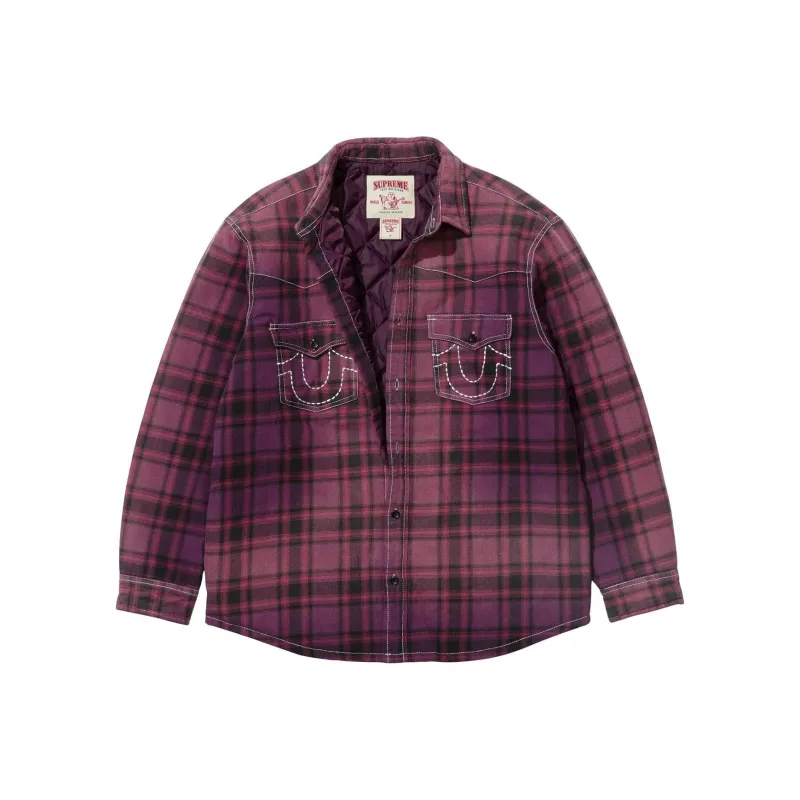 Supreme x True Religion Fw25 WEEK13 Стеганая лайнированная клетчатая фланелевая рубашка унисекс