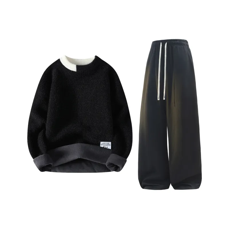 Комплект:Черный свитер с флисовой подкладкой + графитовые черные штаны с флисовой подкладкой