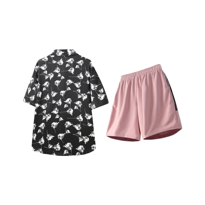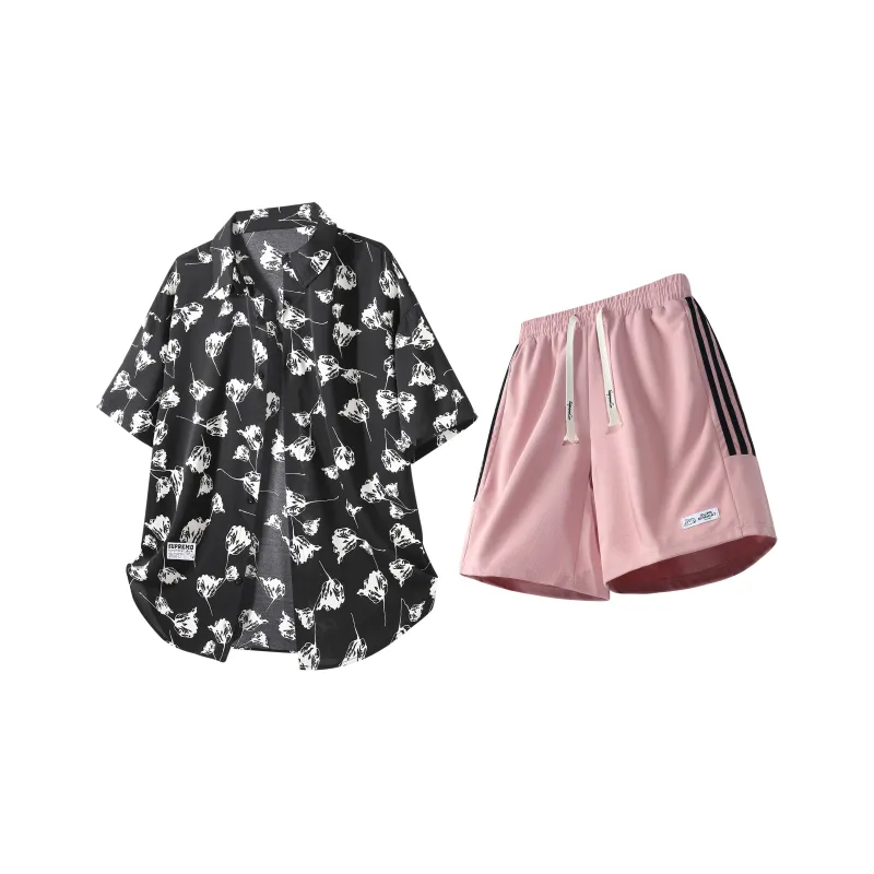 Комплект:Чёрная рубашка + розовые шорты