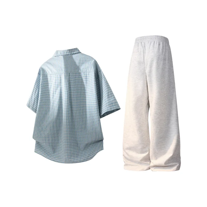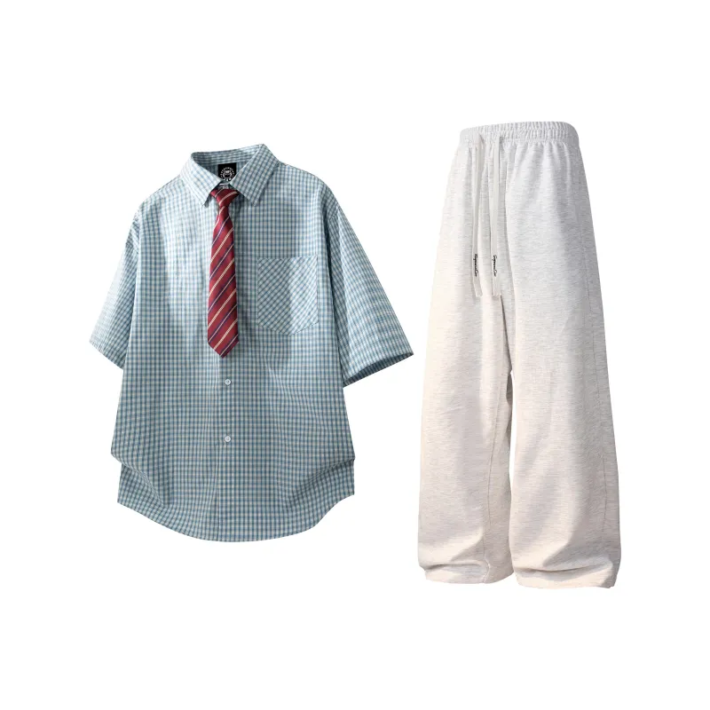 Комплект:Зеленая рубашка с коротким рукавом + белые штаны Фотиния серого цвета