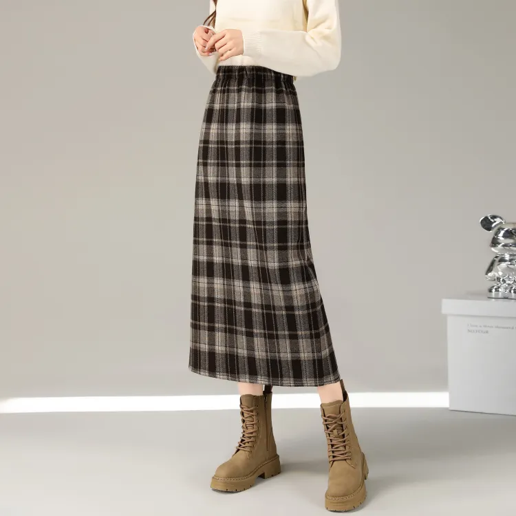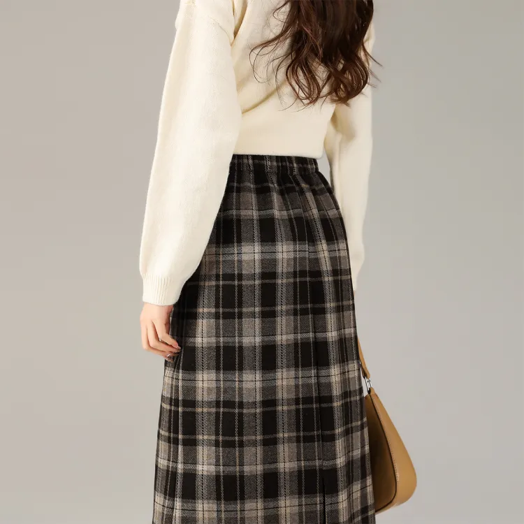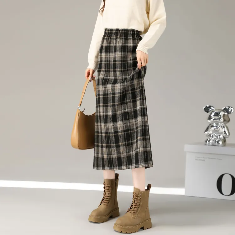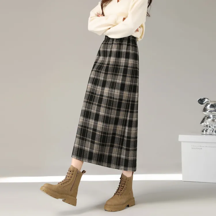 SUXINGDELEYUAN Повседневная длинная юбка женская черная в клетку