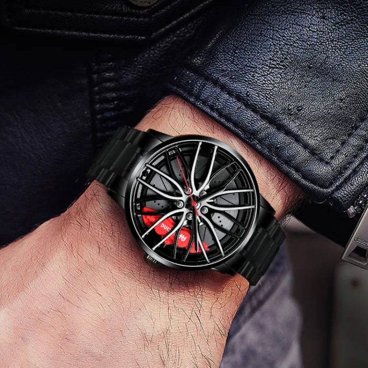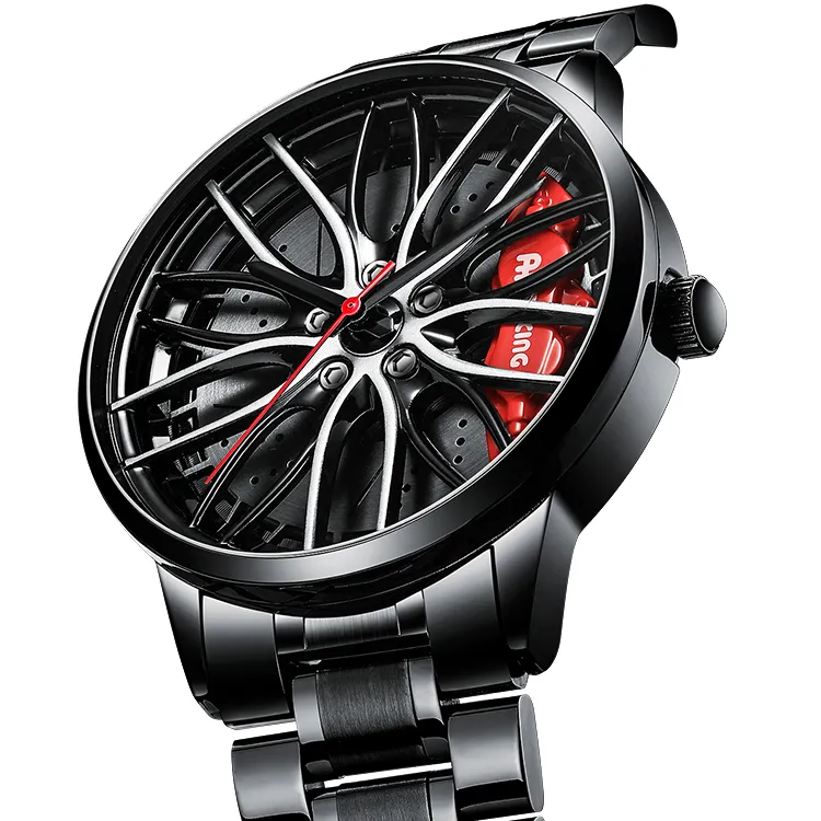 Красный калипер, черный ремешок, твердый стальной браслет