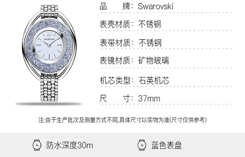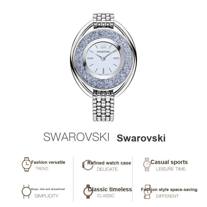 Swarovski Crystalline Oval Женские часы кварцевый механизм ремешок из нержавеющей стали синий циферблат