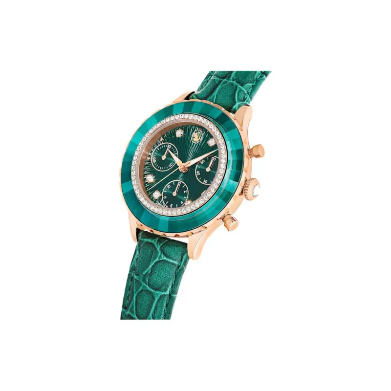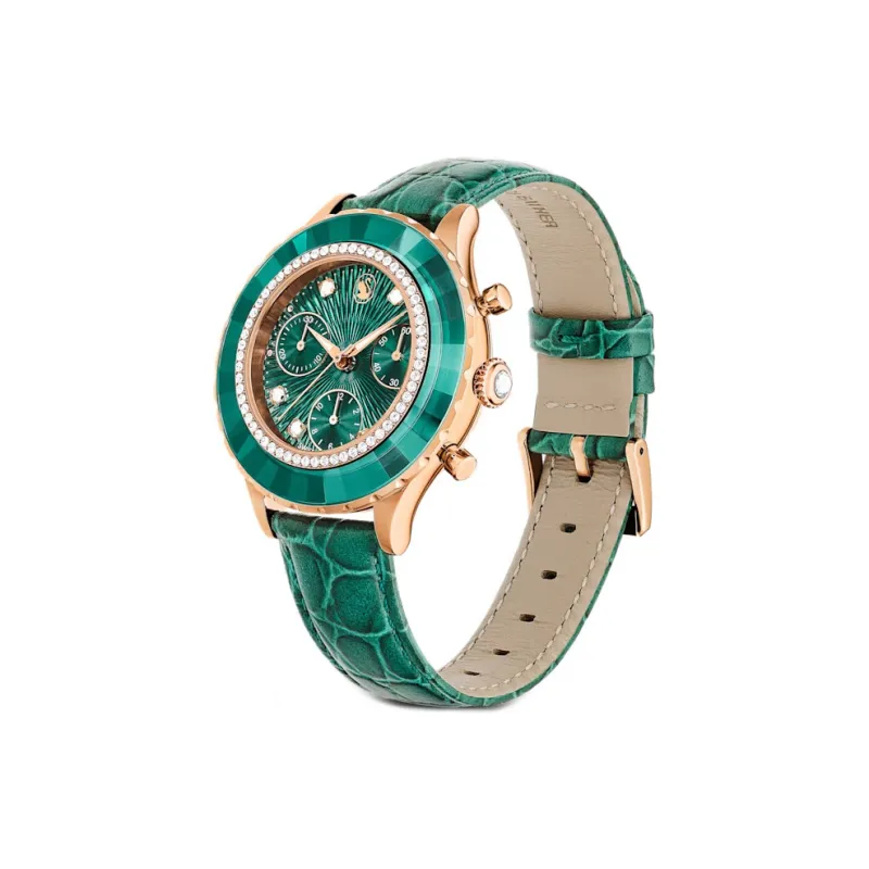 Swarovski Octea Chrono Collection Женские часы Кварцевый механизм Корова кожа Ремешок 43*37 мм Зеленый циферблат