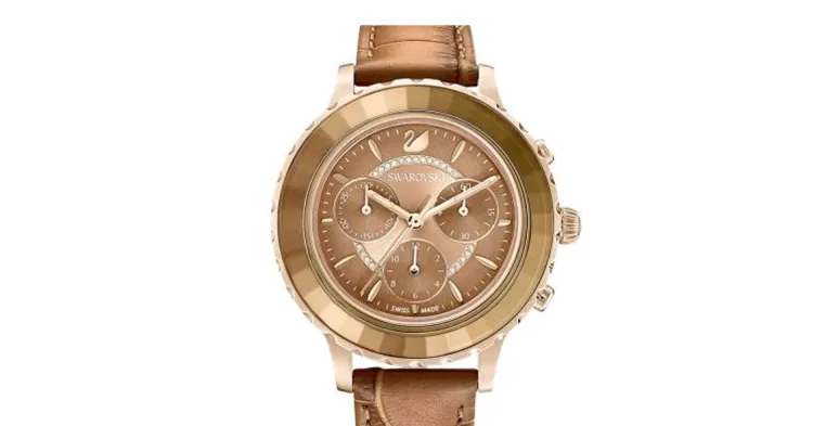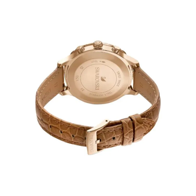 Swarovski Octea Lux Chrono Наручные часы Кварцевый механизм Кожаный ремешок Циферблат цвета кофе Женские часы
