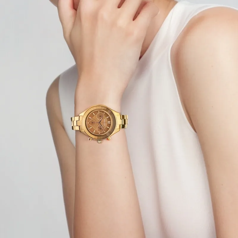 Swarovski Octea Lux Sport Collection Кварцевые Женские Часы Ремешок из Нержавеющей Стали Желтый Циферблат