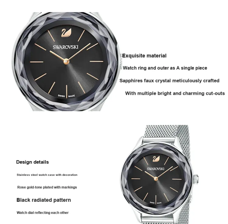 Swarovski Octea Nova Collection Кварцевые Женские Наручные Часы Холстовый Ремешок Черный Циферблат