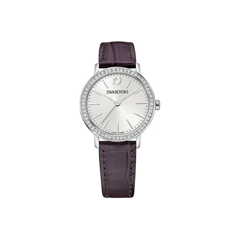 Swarovski Наручные часы Кварцевый механизм Кожаный ремешок 29 мм Серебристый циферблат Женские часы