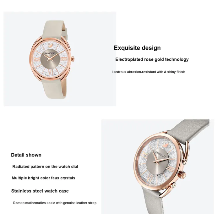 Swarovski Uptown Collection Crystalline Glam Collection Кварцевые наручные часы Кожаный ремешок Серый циферблат
