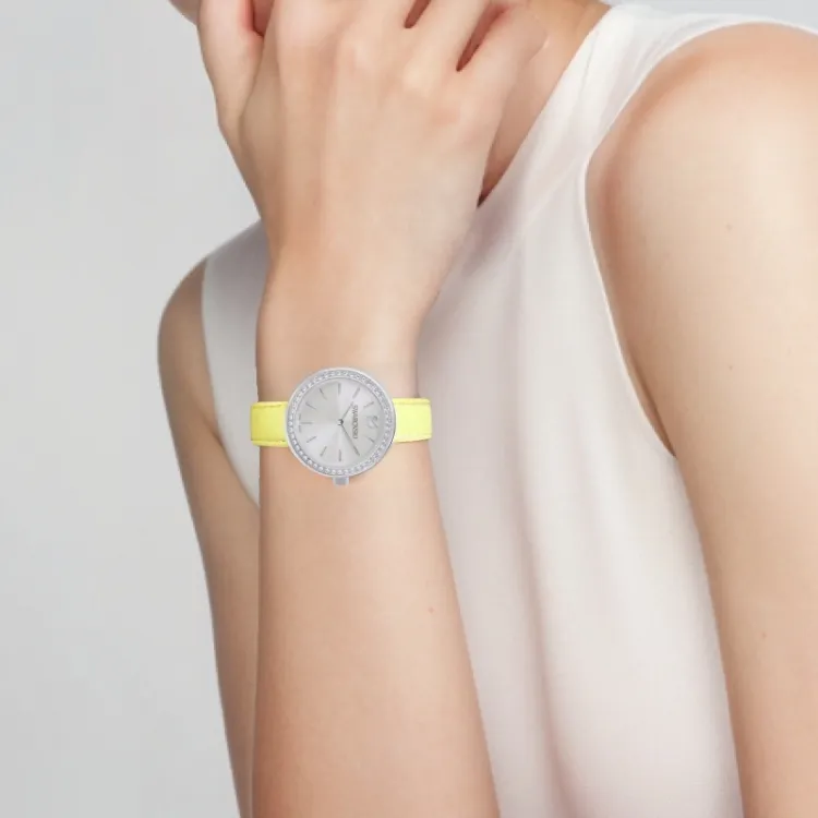 Swarovski Наручные часы Кварцевый механизм Коровья кожа Ремешок 34 мм Серебристый циферблат Женские часы
