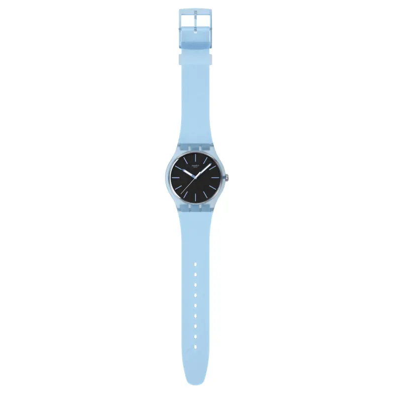Swatch Essentials Collection Кварцевый механизм Унисекс Часы 41 мм Черный циферблат Bio Based Материал Корпус Часы Силиконовый ремешок