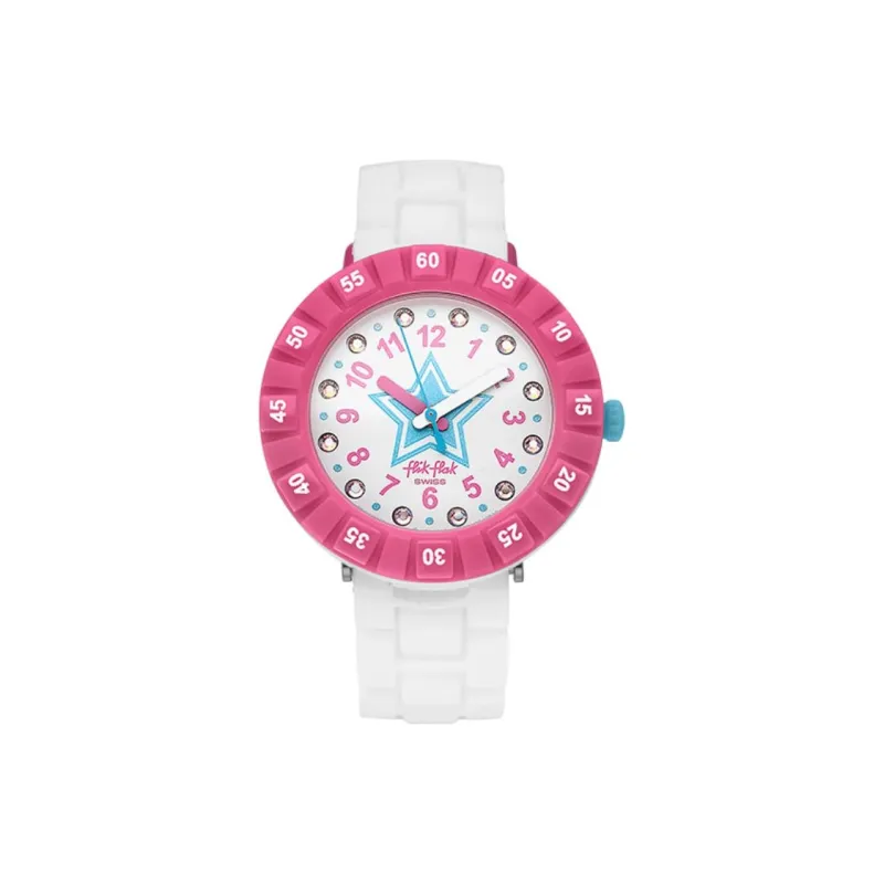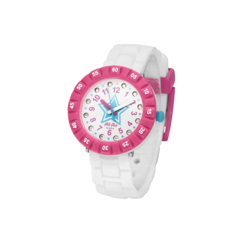 SWATCH Flik Flak Feifei Series Кварцевый механизм Детские часы 36,7 мм Белый циферблат Пластиковый корпус Часы Пластиковый ремешок